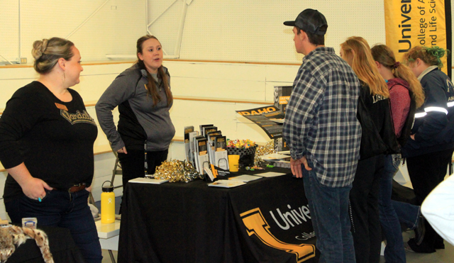group talking with representatives from the University of Idaho and the