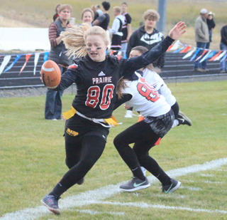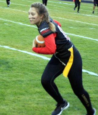 Ellea Uhlenkott runs the ball for the Jr.-Soph. team