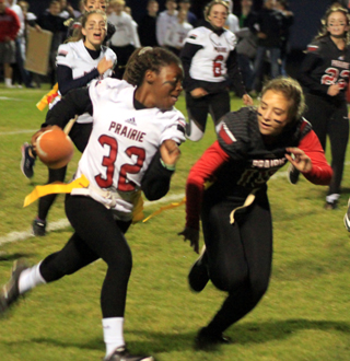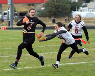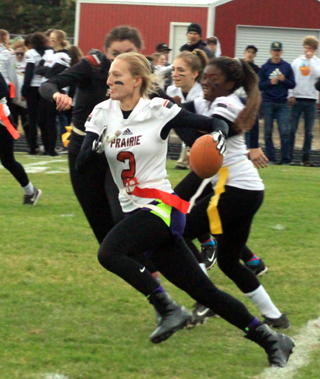 Ciara Chaffee runs with the ball as Ali Rehder reaches