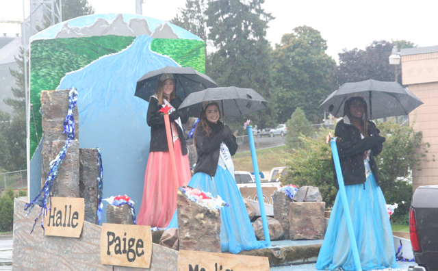 smiling despite the cold, wet weather at the Lewis County Fair parade in
