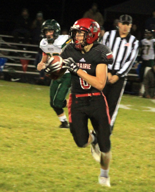 caught a tipped pass at the Prairie 42 and looked like he might take it