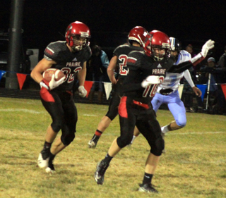 Brody Hasselstrom went 28 yards over the left side to set up first and goal at the 10. Hasselstrom picked up 6 on the next play. After an incomplete pass, Schlader’s only incompletion of the game, Anderson scored from the 7 and then added another extra point kick to make it 42-6. On Lapwai’s next possession Martin intercepted a pass at the 25 and returned it for a touchdown but the play was called back on a penalty. On the next play 4 Prairie defenders met at the quarterback for a 10 yard loss. Dean Johnson, Shears, Anderson and Hayden Uhlenkott combined on the sack. After an incomplete pass, Uhlenkott tackled Wanbli Chimburas for a 10 yard loss back to the 13. Facing fourth and 30, Lapwai actually punted for the first time. Once the punt went just 6 yards you could see why they considered going for it before. Prairie took over at the Lapwai 19 and fed Martin the ball 3 straight times for 12, 3 and then 4 yards for another touchdown. Anderson missed the kick making it 48-6. Prairie got the ball back again on downs at the Lapwai 41 after Schlader tackled a Lapwai receiver for a 4 yard gain on fourth and 8. Prairie needed just 2 plays to add another touchdown. Anderson picked up 9 yards and then Martin went around left end for 32 yards and the score. Anderson kicked his fifth extra point to make it 55-6. A sack for a loss of 9 yards with Uhlenkott and Reid Uptmor combining for the tackled led to a Lapwai punt from their own 13. Lapwai actually got off a good punt this time but a personal foul penalty and player ejection against Lapwai wound up giving Prairie the ball at the Lapwai 11 yard line. The referees marked off the penalty from the point of the foul rather than adding it to the end of the return which gave Prairie an extra 10 yards of field position. T.J. Hibbard gained 6 yards up the middle then Hasselstrom took a pitch around left end for 5 yards and the touchdown. Anderson’s extra point kick was blocked leaving it as a 61-6 lead for the Pirates. Lapwai got a 44 yard run by Henry to set them up with a first down at the 14. Time ran out on the Wildcats though as Hasselstrom and Martin tackled Yearout at the 2 as the half ended. Lapwai received the second half kickoff but turned the ball over on their second play as Martin intercepted at the Lapwai 38 and returned to the 32 before being forced out of bounds. On the next play Schlader connected with a wide open Martin for a 32 yard scoring play. Schlader then passed to Martin for the 2-point conversion to make it 69-6. Lapwai went for it on fourth and long from their own 31 and were stopped short with Prairie taking over at the 30. Hibbard looked like he might score on the first play as he gained 22 yards to set up first and goal at the 8. Two runs by Hasselstrom moved the ball to the 1 and on the next play, Mager, now in at quarterback, ran a sneak for the touchdown. Hibbard ran in the 2-pointer to make it 77-6. Prairie got the ball right back after 4 incomplete passes by Lapwai. Colton McElroy was now in a quarterback and picked up 21 yards to set up a first and goal at the 7. Lane Schumacher gained 1 and 5 yards to move the ball to the 1 but fumbled it away on the next play. Lapwai took over at their own 2 and were finally able to move the ball against the JV defense. Henry gained 21 yards on a pass reception. Matt Coppernoll sacked Yearout for an 8 yard loss but Yearout then picked up 30 yards on a scramble. A pass completion to Chimburas picked up 45 to set up Lapwai just outside the 10 yard line. 2 plays later Yearout connected with Arreis Bisbee for a touchdown. Yearout then ran in the 2-pointer, the first 2-point try given up by Prairie all season, to make it 77-14 with 3:06 left to play. Prairie was then able to run out the clock. The Pirates had 380 yards rushing on 39 attempts. Martin had 126 yards on 11 carries. Hasselstrom added 67 yards on 7 carries. Anderson had 45 yards on 7 carries. Shears had 42 yards on 2 carries. Hibbard had 36 on 3 carries. Schlader had 34 on 2 carries and McElroy had 24 on 3 carries. Schlader completed 6 of 7 passes for 141 yards and 3 touchdowns. Mager caught 2 for 91 yards. Martin caught 2 for 39 yards and Shears caught 2 for 11 yards. Lapwai had 64 yards rushing on 24 attempts. Yearout was 10 for 35 with 3 interceptions for 159 yards passing. Anderson had 11 tackles with 3 sacks and 1 interception. Shears had 5.5 tackles with 1 sack. Martin had 2.5 tackles with an interception. Ross had 2 tackles with an interception. Uhlenkott had 2 tackles with ½ a sack. Schlader and Schumacher each had 2 tackles. Hibbard had 1.5 tackles. Coppernoll had 1 tackled with a sack. Johnson had 1 tackle and ½ a sack. Hasselstrom, Shane Hanson, Jesse Cronan, Quirt Goeckner and John Gehring each had 1 tackle and Uptmor had ½ a tackle plus a sack. Anderson was 5 for 8 on extra point kicks. Prairie is now 6-0 on the season and 4-0 in league play. Their next game is this Friday, Oct. 18 at Kamiah at 7 p.m. They can clinch at least a share of the league championship with a win. Lapwai 6 0 0 8 -14 Prairie 28 33 16 0 -77 P-Anderson 3 run (Martin run) 10:50 1st P-Schlader 9 run (Anderson kick) 9:28 1st P-Shears 11 pass from Schlader (kick failed) 5:29 1st L-Yearout 6 run (pass failed) 2:00 1st P-Mager 82 pass from Schlader (Anderson kick) 0:34 1st P-Anderson 7 run (Anderson kick) 10:20 2nd P-Anderson 4 run (Anderson kick) 8:06 2nd P-Martin 4 run (kick failed) 4:33 2nd P-Martin 32 run (Anderson kick) 3:11 2nd P-Hasselstrom 5 run (kick blocked) 1:18 2nd P-Martin 32 pass from Schlader (Martin pass from Schlader) 10:30 3rd P-Mager 1 run (Hibbard run) 3:50 3rd L-Bisbee 8 pass from Yearout (Yearout run) 3:06 4th