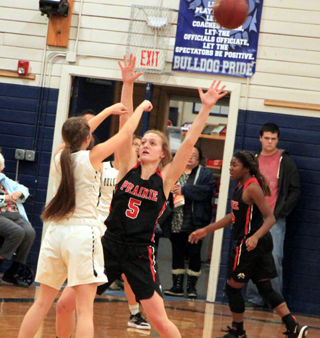 Prairie was 12 for 35 from the field, 34%, and 19 for 25 at the line, 76%. Grangeville was 18 for 57 from the field, 32%, and 6 for 19 at the line, 32%. Contributing to the first half deficit were 21 turnovers. Prairie wound up with 31 for the game. Grangeville had 23 turnovers. Prairie is now 3-1 on the season and gets another chance at Grangeville this Friday, Dec. 6 at Cottonwood in the Idaho County Shootout. The JV team beat Grangeville 50-23. A basket each by Ali Rehder and Laney Forsmann gave Prairie a quick 4-0 lead. Grangeville answered with 5 straight points for what turned out to be their only lead of the game. Olivia Klapprich tied the game at 5-5 with a free throw and Rehder scored on a feed from Josie Remacle to put Prairie on top to stay with 4:03 left in the first quarter. Prairie wound up scoring 9 straight points to take a 13-5 lead as Rehder added a free throw, Hope Schwartz and Molly Johnson a basket each and Remacle a free throw. A Grangeville basket made it 13-7 at the end of the first quarter. Prairie started the second quarter with an 8-0 run with 6 of those 8 points coming on free throws. Schwartz was 3 for 4 at the line in that run while Forsmann was 2 for 2 and Remacle 1 for 2. Rehder scored the only basket as Prairie took a 20-7 lead. Grangeville tried to rally back the rest of the half but Prairie held a 25-16 lead at the break. A basket each by Johnson and Klapprich made it 29-16 early in the third quarter. After a Grangeville basket, Prairie put together a 7-0 run with 5 of those by Rehder. She had 2 free throws then Schwartz scored a basket before Rehder hit a 3-pointer to make it 36-18. Prairie led 40-21 after 3 quarters. The Bulldogs scored 2 free throws to open the fourth quarter but those were their final points of the game as Prairie scored the final 10 points of the game. Rehder wound up with 16 points to lead the scoring. Schwartz was also in double figures with 10 points. Remacle scored 9. Forsmann 6, Klapprich 5 and Johnson 4. Prairie had a 38-32 rebounding edge with Remacle grabbing 11 to lead the team. Johnson added 8 and Forsmann 7. Forsmann had 5 steals and 5 assists while Klapprich had 4 steals and Johnson and Remacle had 3 assists each. Prairie was 16 for 43 from the field, 37%, and 16 for 32 at the line, 50%. Grangeville was 8 for 38 from the field, 21%, and 7 for 11 at the line, 64%. Prairie 6 10 13 16 -45 Grangeville 19 10 8 10 -47 Prairie-Shears 5-9, 10-12, 22; Uhlenkott 3-5, 4-4, 10; Schlader 0-2, 0-0, 0; Peery 1-9, 1-2, 3; Chaffee 1-3, 4-6, 6; Lockett 0-1, 0-0, 0; Wemhoff 2-6, 0-1, 4. 3-pointers-Shears 2. Grangeville-Barger 3-11, 2-3, 10; Hill 1-3, 0-0, 2; Lutz 2-4, 0-0, 4; Vanderwall 6-20, 3-7, 16; Canaday 1-5, 1-3, 3; Brown 4-7, 0-5, 9; Smith 0-3, 0-0, 0; Bashaw 0-2, 0-1, 0; Roberts 1-2, 0-0, 3. 3-pointers-Barger 2, Vanderwall, Brown, Roberts.