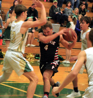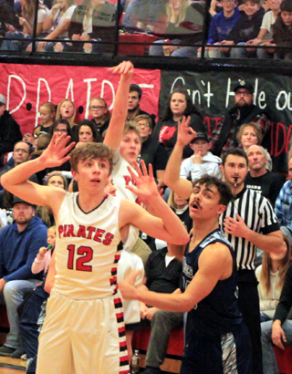 Prairie got off to a good start as Owen Anderson scored Prairie’s first points of the game. Daman Forsmann followed with a 3 pointer and Brody Hasselstrom stole the ball and scored for a 7-0 lead. Grangeville didn’t score until the 4:30 mark of the first quarter but their first points came at the free throw line. A basket cut the lead to 7-4 but Forsmann connected on another 3 to make it 10-4 with 2:10 left in the quarter. Grangeville then scored 9 straight points to end the quarter with a 10-13 lead. 4 of those 9 points were free throws. In the second quarter Prairie got within 1 point 3 times at 12-13, 14-15 and 16-17. They finally were able to tie the score at 22 when Anderson made a free throw. Grangeville quickly answered but Prairie retied the score at 24 when Hasselstrom drove the baseline for a lay-up. Grangeville then took back the lead with a Tori Ebert 3-pointer and Kyle Frei added a basket and then a free throw as Grangeville took a 30-24 halftime lead. A 3 to open the second half by Tescher Harris gave Grangeville a 9 point lead but Prairie fought back within 2 when Forsmann and Anderson connected on back to back 3’s that cut the lead to 34-36 with 3:48 left in the third quarter. Grangeville answered with a 3 of their own and added a basket to take a 34-41 lead into the fourth quarter. A 3-point play by Hasselstrom and a 3 pointer by Forsmann cut the lead back to 3 at 40-43 with 6:30 left but Grangeville then scored 7 straight to push the lead back to 10. Prairie got no closer than 7 the rest of the way. For the game Forsmann scored a game-high 23 points as he connected on six 3-pointers. Also in double figures were Hasselstrom with 13 and Anderson with 10. Hayden Uhlenkott and Zach Rambo each scored 2 while Derik Shears scored 1. Grangeville had the rebounding edge 38-43. Shears led the Pirates with 11 boards. Forsmann had 3 steals and Hasselstrom had 3 assists. Prairie was 18 for 57 from the field, 33%, and 8 for 20 at the line, 40%. Grangeville was 19 for 42 from the field, 45%, and 19 for 42 from the line, also 45%. Of note defensively, Shears took 3 charges in the game. The JV game was played at Grangeville on Wednesday, Dec. 4 with Grangeville winning 38-44. The C team also played Grangeville that night and won their game 33-29. Prairie 10 14 10 17 -51 Grangeville 13 17 11 21 -61 Prairie-Hasselstrom 6-10, 1-4, 13; Forsmann 8-21, 2-2, 23; Anderson 4-15, 1-2, 10; Uhlenkott 0-3, 2-4, 2; Shears 0-3, 1-5, 1; Rambo 0-1, 2-3, 2; Schwartz 0-1, 0-0, 0; Mager 0-2, 0-0, 0; Ross 0-0, 0-0, 0; Wemhoff 0-0, 0-0, 0. 3-pointers-Forsmann 6, Anderson. Grangeville-Harris 4-7, 0-0, 9; School 1-5, 4-10, 6; Anderson 2-4, 2-3, 6; K. Frei 5-8, 8-15, 18; D. Lindsley 2-4, 2-8, 6; Lefebvre 2-5, 0-0, 5; Ebert 3-6, 2-2, 10; C. Frei 0-2, 1-4, 1. 3-pointers-Ebert 2, Harris. Anderson again was the first to score as he hit a 3-pointer this time. St. Maries answered but Shears scored his first basket of the season to make it 5-2. A