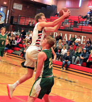 A 2-7 run gave St. Maries their first lead. Shane Hanson put Prairie back on top with a lay-up and after a 3-point play by St. Maries, Gehring tied the score at 10 with another putback. That’s where it stood at the end of the quarter. St. Maries had their own shooting struggles in the second quarter as they hit just 1 of 16 shots and were 2 of 5 at the line. That allowed Prairie to take an 18-14 halftime lead. St. Maries scored first in the quarter but Prairie answered with a 6-0 run. Gehring scored a putback then Tyler Wemhoff sank 2 free throws and Travis Alfrey drove to the hoop for a lay-up to make it 16-12. St. Maries broker the run with a free throw but a putback by Alfrey made it 18-13. Another St. Maries free throw made it 18-14 at the half. A basket by Wemhoff opened the second half scoring and put Prairie up by 6 at 20-14. Prairie led 27-23 after a 3 by Alfrey, a driving lay-up by Wyatt Ross and basket by Alfrey. St. Maries then closed out the third quarter with a 0-9 run to take a 27-32 lead into the fourth quarter. Ross drove in for a basket to open the fourth but St. Maries answered. Prairie then ran off 12 straight points to take a 41-34 lead with 3:12 to play. Wemhoff opened the run with a free throw then Gehring scored a putback. Schumacher scored a lay-up, Hanson a putback, Gehring a lay-up, Wemhoff a short baseline shot and Schumacher a free throw. St. Maries answered though with a 0-8 run that put them back on top 41-42 with 1:17 left. Hanson hit the front end of a 1 and 1 to tie it with 29.8 seconds left. Both teams had their chances but it came down to an inbounds play after a timeout by St. Marie with 5 seconds left. Inbounding from the sideline, St. Maries got a pass to post player Tristan Hill who converted a lay-up with 2 seconds left. Prairie had no timeouts left and couldn’t get the ball inbounded before the clock ran out. Gehring had a big game for the JV’s with 12 points and 19 rebounds to lead the team in both categories despite sitting out the third quarter. Alfrey scored 9 with Wemhoff and Hanson adding 6 points each. Schumacher scored 5 and Ross 4. Prairie had a 51-47 edge on the boards. Wemhoff had a big game on defense with 10 steals while Schumacher had 5 assists. Prairie was 17 for 63 from the field, 27%, and 7 for 14 at the line, 50%. St. Maries was 18 for 61 from the field, 30%, and 5 for 9 at the line, 56%. Prairie 16 24 23 14 -77 St. Maries 17 18 27 8 -70 Prairie-Schlader 7-19, 9-12, 25; Rambo 1-3, 1-2, 3; Mager 2-3, 2-2, 6; Anderson 5-10, 1-4, 11; Shears 8-15, 4-4, 20; Forsmann 3-9, 1-3, 7; Uhlenkott 1-1, 0-0, 2; Hasselstrom 1-1, 1-2, 3; Schwartz 0-0, 0-0, 0. 3-pointers-Schlader 2. St. Maries-Ross 5-8, 0-0, 10; Becktel 5-11, 0-0, 13; Stancil 4-11, 1-2, 12; Peet 0-1, 0-0, 0; Gibson 8-22, 0-2, 23; Sands 2-3, 0-0, 6; Ledbetter 3-3, 0-0, 6; Elliott 0-1, 0-0, 0. 3-pointers-Gibson 7; Stancil 3, Becktel 3, Sands 2.