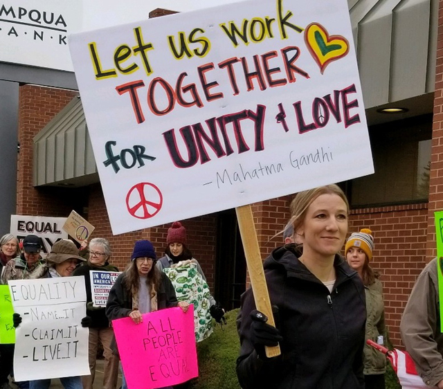 “What are you doing for others?” is a question that Martin Luther King Jr. asked in 1957 which is still relevant today. Come join us for the 2nd annual People’s March on Saturday January 18th to honor the spirit of Martin Luther King Jr./Human Rights Day Weekend. No matter what your religion, spirituality or politics we welcome people of all ages to share a positive message of acceptance of all people. The event organized by Carla Wilkins of Lewis-Clark State College- Grangeville Outreach Center, Norma Staaf and Michelle Perdue will take place at the Veterans Outreach and Community Center at 318 E. Main Street in Grangeville. Doors open at 10:30 for optional sign-making, with supplies provided. (We encourage positive sign messages) We will gather for the march by 11:45, walking peacefully on the sidewalks of downtown Grangeville. We will return to the Center for a soup and sides potluck lunch at 12:30. (Please bring a dish to share) Participants are also encouraged to bring canned food donations for the food bank. During lunch three speakers (10 minutes each) will each bring their own perspective to our theme of “What are you doing for others?. Pat Hunter will discuss her fundraising for “Rescue Her”, an organization which fights human trafficking. She creates and sells a variety of hand-crafted items through “Pat’s Crafty Corner” with all profits going to “Rescue Her.” Kelly Turney will focus on the positive contributions of the millennial generation to our community. Turney owns a photography business and directs the Cornerstone Theater Group in addition to her role as the director of the Hope Center. Joel Gomez, owner of the Melting Pot and the Trails Restaurants in Grangeville will discuss his experience as an immigrant. If you have any questions about the event, contact Carla at LCSC 208-983-2164, Norma at 208-993-0689 or Michelle at 983-3763.