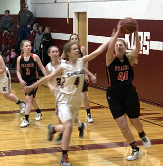 The Prairie Lady Pirates wound up playing just 1 game this past week out of 4 scheduled games with the rest cancelled due to weather conditions. On Thursday, Jan. 9, they traveled to Kamiah where they won 50-15. Prairie jumped out to a 20-8 lead by the end of the first quarter and led 30-12 by halftime. Prairie led 40-15 after 3 quarters and shut out Kamiah 9-0 in the fourth, invoking the running clock early in the quarter. Madison Shears connected on four 3-pointers and led the scoring with 16 points. Delanie Lockett also scored in double figures with 10 points and added 9 rebounds. Ellea Uhlenkott scored 7 points, India Peery 6, Kristin Wemhoff 5, and Ciara Chaffee and Tara Schlader 3 each. Shears and Uhlenkott each had 4 steals. The JV team won a shortened game 26-14. Games cancelled were Friday at Cottonwood against Salmon River, Saturday at Troy and Monday at Genesee. The Genesee game will be made up Monday, Jan. 20 at Genesee with the JV game to start at 4:30 p.m. The school is working on rescheduling the Troy game. Prairie 20 11 10 9 -50 Kamiah 8 4 3 0 -15 Prairie-Lockett 5, 0-0, 10; Wemhoff 2, 1-3, 5; Shears 6, 0-1, 16; Uhlenkott 3, 0-2, 7; Remacle 0, 0-0, 0; Schlader 1, 1-1, 3; Peery 1, 3-6, 6; Schwartz 0, 0-0, 0; Chaffee 1, 1-2, 3; Bruegeman 0, 0-0, 0. 3-pointers-Shears 4, Uhlenkott, Peery. Kamiah-Engeldow 1, 0-0, 3; Landmark 0, 0-0, 0; Loewen 2, 0-0, 5; Hix, 0, 1-2, 1; Oatman 0, 0-1, 0; Wyatt 0, 0-0, 0; Barger 1, 0-0, 2; Knight 0, 2-4, 2; Popp 0, 2-4, 2; McLay 0, 0-0, 0; Vasquez 0, 0-0, 0; McNall 0, 0-0, 0. 3-pointers-Engledown, Loewen.