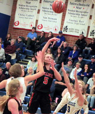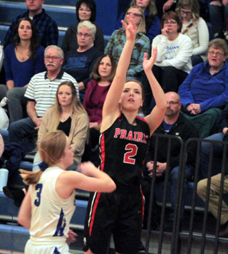 Prairie took a 6-4 lead early on after a 3 by Shears but Genesee responded with a 0-7 run to take a 6-11 lead. After it was 9-13, Prairie put together an 11-0 run to take a 20-13 lead. Chaffee scored a pair of baskets and Wemhoff hit a 3 to put Prairie up 16-13. Schlader scored inside and then Wemhoff stole the ball and drove for a lay-up. Genesee scored a pair of free throws to make it 20-15 at the end of the first quarter. Genesee was 6 for 6 in the first quarter at the line as two Prairie players picked up 3 quick fouls. The second quarter started the free throw fest in earnest as Prairie attempted 12 free throws, making 8, and Genesee attempts 13 free throws, making 5. Prairie had 15 fouls called on them in the half while Genesee had 11. Each team made just 3 baskets in the half but Prairie was able to take a 36-26 halftime lead as 2 of their 3 baskets were 3-pointers, both by Peery and made back-to-back within 30 seconds of each other to turn a 3-point edge into a 9-point lead. Genesee turned things around coming out of the half as they started the second half with a 1-14 run to take a 37-40 lead with 1:45 left in the third quarter. Coach Lori Mader called a timeout and got her team turned around as they finished the quarter with a 7-0 run to retake the lead, 44-40, heading into the fourth quarter. Uhlenkott opened the fourth quarter scoring with a drive for a lay-up and was fouled, converting the 3 point play. Peery added 2 free throws 20 seconds later for a 49-40 lead. After a Genesee basket, Prairie scored 9 straight points, the first 5 at the line, to take a 58-42 lead with 5:20 to play. Prairie would make just 1 more basket the rest of the game as 11 of their final 13 points were free throws. Genesee rallied to cut the lead to 9 at 59-50 with 4:21 to play but Prairie then put together a 12-1 run to make it 71-54 with 1:31 to play. Peery started the rally with 2 free throws. Shears then drove in for the only basket of the run. Peery sank another free throw. Genesee scored a free throw then Lockett scored at the line. Wemhoff made a pair of free throws and Lockett added 2 more to make it 71-51. Genesee scored a 3-pointer and then a putback to make the final margin 15. Shears led all scorers with 20 points with Peery adding 17. Uhlenkott scored 11 with Wemhoff adding 9. Lockett and Chaffee each scored 5 while Schlader and Josie Remacle each scored 2. Prairie dominated the boards 50-31 with Peery grabbing 11 and Uhlenkott 10 as both had double-doubles. Shears added 8 rebounds. Peery had 4 steals while Shears and Uhlenkott each had 4. Uhlenkott had 4 assists to lead the team. Prairie was 17 for 45 from the field, 38%, and 32 for 49 at the line, 65%. Genesee was 19 for 54 from the field, 35%, and 13 for 31 at the line, 42%. Genesee started the game 6 for 6 at the line which means they hit just 7 for 25 after that. They were 2 for 10 in the second half. Prairie is now 11-3 on the season and 7-2 in league play. The JV team allowed Genesee just 1 basket and 4 free throws for the entire game as they rolled to a 62-6 win. Prairie scored the first 28 points of the game as they led 24-0 at the end of the first quarter and scored the first 4 points in the second. Hope Schwartz had 10 first quarter points on 4 of 5 shooting which included a pair of 3-pointers. Ali Rehder and Laney Forsmann each added 6 points. Genesee finally got on the board with a free throw at the 5:12 mark of the second quarter. They scored 2 more at the line to make it 28-3 then Prairie scored the final 7 points of the half for a 35-3 lead. Rehder had 4 more points in the second quarter while Josie Remacle scored 3. Prairie scored the first 13 points of the second half to make it a 20-0 run. Schwartz added 2 more 3’s in that run while Molly Johnson scored 3 and Forsmann and Olivia Klapprich added 2 each. Genesee’s only point of the quarter came on a free throw with 3:14 left. Johnson and Chloe Rowland then each scored a basket to give Prairie a 52-4 lead after 3 quarters which means the fourth was played with a running clock. Rehder hit a 3-pointer to open the fourth and Remacle added a free throw for a 56-4 lead. Genesee then made their only basket of the game. Prairie scored the final 6 points to close out the win. Schwartz had 16 points including 4 for 4 from 3-point range to lead the scoring. Rehder was right behind with 15 points. Forsmann scored 10, Remacle 8, Johnson 7, Klapprich 4 and Rowland 2. Prairie dominated the boards 38-24 with Johnson pulling down 9 rebounds and Remacle 8. Rehder had 8 steals while Forsmann and Klapprich had 5 each. Rehder and Forsmann each had 3 assists. Prairie was 26 for 57 from the field, 46%, and 5 for 13 at the line, 38%. Genesee was 1 for 26 from the field, 4%, and 4 for 9 at the line, 44%. Prairie 20 16 8 27 -71 Genesee 15 11 14 16 -56 Prairie-Lockett 0-2, 5-6, 5; Shears 6-13, 7-10, 20; Uhlenkott 2-4, 7-11, 11; Peery 3-13, 9-12, 17; Chaffee 2-4, 1-2, 5; Wemhoff 2-6, 4-6, 9; Schlader 1-1, 0-2, 2; Remacle 1-2, 0-1, 2; Bruegeman 0-0, 0-0, 0. 3-pointers-Peery 2, Shears. Genesee-Ranisate 3-9, 3-7, 9; Hanson 2-6, 0-2, 6; Parkins 4-5, 2-4, 10; Zenner 3-7, 6-9, 12; Leseman 3-13, 1-3, 8; Bartosz 0-2, 0-0, 0; Murray 1-1, 0-2, 2; Stout 1-4, 0-2, 2; Monk 1-6, 1-2, 4; Mayer 1-1, 0-0, 3. 3-pointers-Hanson 2, Leseman, Monk, Mayer.