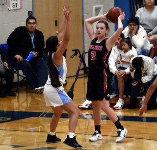 The two teams each scored 28 points in the second half. Madison Shears scored over half of Prairie’s points in the game as she scored a game-high 22 with three 3-pointers and was 9 of 12 at the free throw line. Ciara Chaffee scored 8 with India Peery, Kristin Wemhoff and Ellea Uhlenkott each adding 4 points. Prairie 5 9 15 13 -42 Lapwai 15 17 16 12 -60 Prairie-Lockett 0, 0-0, 0; Wemhoff 1, 2-2, 4; Shears 5, 9-12, 22; Uhlenkott 1, 2-6, 4; Schlader 0, 0-0, 0; Peery 2, 0-1, 4; Chaffee 1, 6-7, 8; Bruegeman 0, 0-0, 0. 3-pointers-Shears 3. Lapwai-Gr. Sobotta 2, 2-2, 7; Lussoro 5, 2-2, 13; J. Gould 3, 1-1, 8; Mitchell 3, 3-4, 9; Gl. Sobotta 3, 2-2, 10; Greene 2, 0-0, 4; L. Gould 2, 3-5, 7; Shippentower 0, 0-0, 0. Team-2 points. 3-pointers-Gl. Sobotta 2, Gr. Sobotta, Lussoro, J. Gould. Prairie led 27-12 after the first quarter and 50-29 by halftime. They led 75-31 after 3 quarters and then added 17 more in a running clock fourth quarter as they outscored Potlatch 17-6 in the final frame. Prairie had 5 players score in double figures led by Shears with 17 points. Uhlenkott and Peery scored 14 each and Delanie Lockett and Chaffee each scored 12. Sydnee Bruegeman was just shy of double figures with 9 points on 4 for 4 shooting. Wemhoff scored 8, Hope Schwartz 3, Josie Remacle 2 and Tara Schlader 1. Chaffee had 8 rebounds and Lockett had 8 steals plus 8 rebounds. Lockett, Shears and Peery each had a pair of 3-pointers. The JV team also won big, 62-18. Prairie 27 23 25 17 -92 Potlatch 12 17 2 6 -37 Prairie-Lockett 4, 2-4, 12; Wemhoff 4, 0-0, 8; Shears 7, 1-2, 17; Uhlenkott 6, 2-4, 14; Remacle 1, 0-0, 2; Schlader 0, 1-2, 1; Peery 4, 4-6, 14; Schwartz 1, 1-1, 3; Chaffee 3, 6-8, 12; Bruegeman 4, 1-2, 9. 3-pointers-Shears 2, Lockett 2, Peery 2. Potlatch-D. Carpenter 2, 2-6, 6; T. Carpenter 0, 0-0, 0; Cessnun 0, 0-0, 0; Chambers 1, 1-2, 4; Hamburg 1, 0-0, 2; Thompson 4, 3-4, 12; Arciga 0, 0-0, 0; Beckner 0, 0-0, 0; Reynolds 3, 3-8, 9; Brown 0, 0-0, 0; Atkinson 0, 0-1, 0; Larson 1, 2-2, 4. 3-pointers-Chambers, Thompson. The big difference was the referees calling a foul seemingly every time two players got close to each other. Genesee was whistled for 32 fouls in the game while Prairie had 25. Each team had 2 players foul out. Prairie
