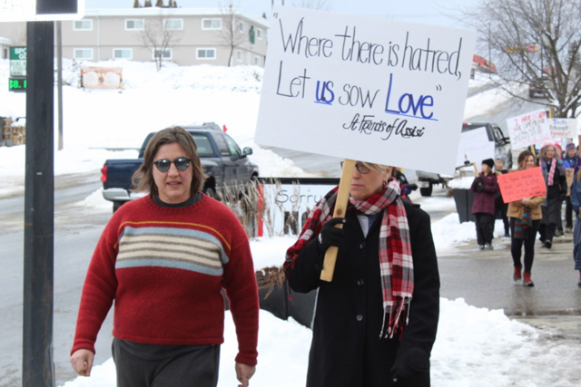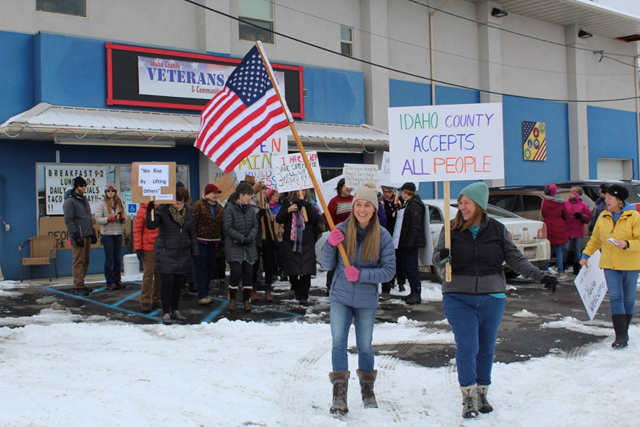 Approximately 60 people braved the chilly conditions this past Saturday for the 2nd Annual People’s March in Grangeville. Photos by Virginia Lynn of Harpster. |