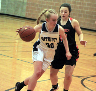 Kendrick scored first then the Patriots took the lead on a basket by Jade Prigge and a free throw by Erin Chmelik. Kendrick then took control outscoring SJB 3-17 the rest of the first quarter. Lexi Currier hit a 3 for the Patriots only points in that run. The second quarter saw SJB play a little closer as they were outscored by 11-13. Chmelik scored 4 points in the quarter while Makayla Rose banked in a 3-pointer and Dani and Jessie Sonnen each scored 2 points. The Patriots trailed 17-32 at the half. Currier added a pair of 3 points and Chmelik a free throw in the third quarter that made it 24-37 then Kendrick reeled off 12 straight points to close out the quarter and take a 24-49 lead into the fourth. Kendrick stretched the lead to 29 with a pair of baskets to open the fourth but Prigge answered with a free throw and Chmelik a 12-foot jumper. Kendrick then hit a 3 and a 2 to push the lead to 31 and invoke the running clock for the final 2:53 of the game. Chmelik scored a basket and Prigge converted a 3-point play for the Patriots final points of the game. Chmelik led the scoring for SJB with 10 points while Currier scored 9 on three 3-pointers. Prigge scored 6 with Rose scoring 3 and Dani and Jessie Sonnen 2 each. Chmelik and Prigge had 8 rebounds each to lead SJB while Kendrick had a 30-40 edge on the boards. Chmelik had 2 steals and Dani Sonnen had 4 assists. SJB was 12 for 42 from the field, 29%, and 4 for 7 at the line, 57%. Kendrick was 22 for 64 from the field, 34%, and 8 for 12 at the line, 67%. St. John Bosco is now 3-6 on the season and in league play. The boys team defeated the Kendrick JV boys 48-30. SJB 6 11 7 8 -32 Kendrick 19 13 17 11 -60 SJB-Chmelik 4-9, 2-4, 10; D. Sonnen 1-9, 0-0, 2; Currier 3-9, 0-0, 9; Prigge 2-9, 2-3, 6; 1-1, 0-0, 2; Rose 1-5, 0-0, 3. 3-pointers-Currier 3, Rose. Kendrick-Brown 7-12, 4-8, 19; Anderson 2-8, 0-0, 5; Sandino 1-3, 0-0, 2; L. Morgan 3-12, 7; Brocke 2-8, 0-0, 5; E. Morgan 6-11, 2-2, 14; Stacy 2-6, 0-0, 4; Cook 0-1, 0-0, 0; Tweit 0-1, 2-2, 2; Stewart 1-2, 0-0, 2; Olson 0-0, 0-0, 0. 3-pointers-Brown, L. Morgan, Brocke.
