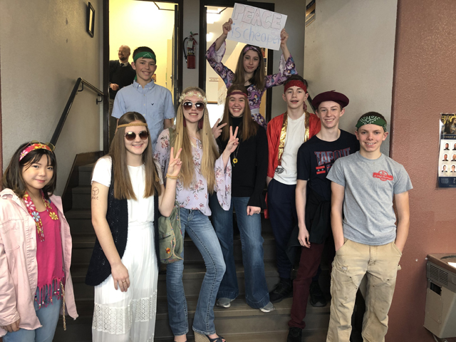 Last week was Spirit Week at St. John Bosco Academy. The students had a great time dressing up different each day. Thursday was a talent show for all the grades. There were lots of very good acts, like dice or card tricks, hula hoop dance, singing accompanied by the keyboard and blowing huge bubbles. One class made up a school song to the tune of The Brady Bunch, only they changed it to The Bosco Bunch. The principal, Mr. Jim Hickel, played a drum solo and surprised everyone. Good job to everyone who performed. Photos by St. John Bosco Academy.