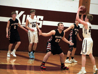Prairie started the quarter with a 6-0 run to take their first lead since it was 1-0. Sam Mager made 1 of 2 free throws then Derick Shears scored on a drive to the hoop. Shears added a free throw 20 seconds later then Cole Schlader put Prairie into the lead with a drive to the hoop. Kamiah briefly took back the lead on a basket by Sams but Schlader answered by hitting 2 of 3 free throws when he was fouled on a 3-point try that Kamiah fans thought was a flop. Zach Rambo then closed out the first half scoring with a 3-pointer for a 24-20 halftime lead. Kamiah scored a basket and a 3-pointer to retake the lead in the third quarter. Schlader tied it with a free throw then Kamiah scored 2 at the line to retake the lead. Shears tied it with a basket inside but Kamiah answered with 2 more free throws. A 3 by Schlader made it 30-29 but Kamiah answered with a lay-up to lead 30-31. A basket each by Shears, on a turnaround, and Rambo on a drive to the hoop, gave Prairie a 34-31 lead at the end of the quarter. Kamiah tied it on a 3-pointer by Titus Oatman to open the fourth quarter but Prairie took the lead for good with a 9-0 run. Mager drove to the hoop for a basket then Damian Forsmann hit a 3-pointer. Schlader scored on a midrange jumper and Forsmann added a transition basket off a feed from Brody Hasselstrom who made a defensive rebound and triggered the break. Oatman made another 3 to end the run but Shears answered with a basket. Kamiah scored their final points with 1:10 left to cut the lead to 6 but Prairie ended the game by making 5 straight points, all on free throws, for an 11-point win. Schlader wound up with 14 points to lead all scorers. Shears and Forsmann each added 11 points while Mager and Rambo each scored 5. Owen Anderson scored 3 and Hayden Uhlenkott 1. Prairie had a 38-25 advantage on the boards after it was even up at 14-all at halftime. Shears had 12 rebounds to lead the team while Forsman added 7 and Anderson 6. Mager, Uhlenkott and Shears each had 2 steals while Hasselstrom had 3 assists. Prairie was 16 for 41 from the field, 39%, and 14 for 26 at the line, 54%. Kamiah was 15 for 50 from the field, 30%, and 3 for 4 at the line, 75%. Prairie is now 12-6 on the season and 7-4 in league play. They finish their regular season this Friday at Cottonwood against Lapwai. With the win Prairie has clinched the #3 seed into District and will play the #6 seed, Genesee, at 7:30 p.m. Tuesday, Feb. 18. The JV team also won, 58-47. Like the varsity, the JV squad trailed at the end of the first quarter. Prairie took a 5-2 lead but then gave up 11 straight points to fall behind 5-13. They outscored Kamiah the rest of the quarter, 7-2, to trail 12-15 at the end of the period. Kyle Schwartz scored 5 and Lane Schumacher 4 in the quarter. Prairie opened the second quarter with a 7-0 run. The first 4 were by John Gehring who had a basket and 2 free throws. Schumacher then hit a 3 to make it 19-15. Kamiah came back to take a 21-24 lead but another 3 by Schumacher tied it at 24. After a Kamiah basket, Prairie took the lead on a lay-up by Schwartz and a putback by Gehring. Kamiah closed the half with a 3-pointer that gave them a 28-29 lead at the break. Wyatt Ross opened the second half with a drive to the hoop that put Prairie on top. Kamiah answered with 2 free throws. Tyler Wemhoff scored a basket and Travis Alfrey added 2 free throws to put Prairie up 34-31. Kamiah cut the lead to 1 but a basket each by Alfrey and Levi Walsh made it 38-33. A 0-7 run by Kamiah put the Kubs back on top 38-40. Wemhoff scored a putback to tie it and Ross a free throw for the lead. Ross then added a basket to put Prairie up 43-40 at the end of the third quarter. Prairie never trailed again. Ross opened the fourth quarter with a basket on an inbounds play. After that Kamiah closed within 3 points 3 different times but couldn’t get any closer. The last time was at 50-47 and Prairie then got a 3-pointer each from Ross and Schumacher to quickly put the lead at 9. Schwartz then close out the scoring with a lay-up with 1:00 left to play. Schumacher led the scoring with 16 points as he connected on four 3-pointers. Gehring added 11 and Ross 10. All of Ross’ points were in the second half. Schwartz scored 9 with Wemhoff and Alfrey adding 4 each. Shane Hanson and Walsh each scored 2. Kamiah edged Prairie on the boards 34-35. Wemhoff had 10 to lead the Pirates. Ross had 5 steals while Wemhoff had 4. Wemhoff had 5 assists and Ross had 3. Prairie was 22 for 62 from the field, 35%, and 8 for 12 at the line, 67%. Kamiah was 19 for 45 from the field, 42%, and 6 for 12 at the line, 50%. Prairie 13 11 10 16 -50 Kamiah 18 2 11 8 -39 Prairie-Schlader 5-15, 3-8, 14; Mager 1-1, 3-6, 5; Anderson 0-1, 3-5, 3; Uhlenkott 0-1, 1-2, 1; Shears 4-7, 3-4, 11; Forsmann 4-10, 1-1, 11; Rambo 2-4, 0-0, 5; Hasselstrom 0-2, 0-0, 0. 3-pointers-Forsmann 2, Schlader, Rambo. Kamiah-Oatman 3-8, 0-0, 9; Brisbois 2-11, 0-0, 5; Taylor 2-6, 0-0, 4; Mercer 0-6, 4-4, 4; Sams 6-15, 0-0, 13; Krogh 2-4, 0-0, 4; Keen 0-0, 0-0, 0; Wilcox 0-0, 0-0, 0. 3-pointers-Oatman 3, Sams, Brisbois.