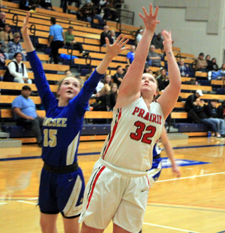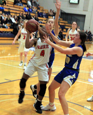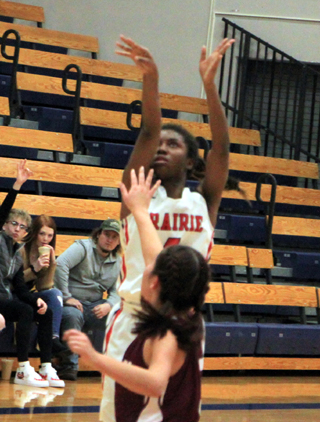 Genesee answered back with a 2-8 run to tie the game at 10-10. A steal by Peery led to a basket by Wemhoff but Genesee answered with 2 free throws. Wemhoff drive in for a basket to give Prairie a 14-12 lead at the end of the first quarter. Uhlenkott scored to open the second quarter but Genesee responded with 5 straight points to retake the lead at 16-17. Chaffee then scored on a feed from Shears to put Prairie back on top. Then Chaffee passed from the post out to Shears for a 3-pointer to make it 21-17. After a Genesee basket, Prairie scored 6 straight for a 27-19 lead. Wemhoff scored a lay-up, Chaffee had 2 free throws and Peery a basket during that run. Genesee ended the run with a 3-pointer by Bailey Leseman. Lockett answered with a basket and Leseman closed out the half with a free throw as Prairie led 29-23 at the break. Shears opened the second half with a 3-pointer but Genesee answered with 4 straight points to make it 32-27. Prairie then held Genesee scoreless for the final 5 minutes of the third quarter while scoring 9 to take a 41-27 lead into the fourth quarter. Shears scored 4 of those points and Peery 3 with Lockett adding the other 2. 5 of Prairie’s 9 points in that run came at the line where they were 5 for 6. Genesee never got any closer than 13 in the fourth quarter as Prairie worked the clock and went to the free throw line where they made just 3 of 7 but it was enough to maintain their lead. Shears wound up with 13 points to lead the scoring. Chaffee scored 12 and had 14 rebounds. She was 3 for 5 from the field and 6 for 8 at the line. Lockett scored 10 with Wemhoff adding 6, Peery 5 and Uhlenkott 2. Genesee edged Prairie on the boards 33-34. Peery and Lockett each had 3 steals while Shears had 4 assists and Uhlenkott and Lockett had 3 each. Prairie was 18 for 43 from the field, 42%, and 10 for 16 at the line, 63%. Genesee was 11 for 45 from the field, 24%, and 10 for 15 at the line, 67%. Prairie is now 18-3 on the season. Prairie 14 15 12 7 -48 Genesee 12 11 4 6 -33 Prairie-Lockett 5-8, 0-1, 10; Shears 4-10, 3-4, 13; Uhlenkott 1-5, 0-0, 2; Peery 2-8, 1-2, 5; Chaffee 3-5, 6-8, 12; Wemhoff 3-4, 0-1, 6; Schlader 0-3, 0-0, 0; Bruegeman 0-0, 0-0, 0. 3-pointers-Shears 2. Genesee-Ranisate 3-4, 2-3, 8; Hanson 0-1, 0-0, 0; Parkins 3-8, 1-2, 7; Zenner 1-5, 1-2, 3; Leseman 2-10, 3-4, 8; Stout 0-3, 2-2, 2; Osborne 0-7, 1-2, 1; Murray 0-2, 0-0, 0; Mayer 1-4, 0-0, 2; Monk 1-2, 0-0, 2; Bartosz 0-0, 0-0, 0. 3-pointers-Leseman.