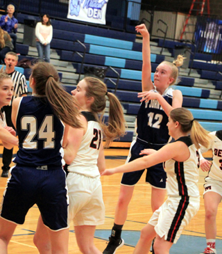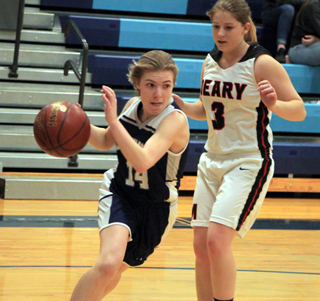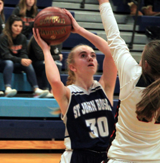 Deary answered with a 2-6 run to trim the lead to 3 but another pair of free throws by Currier made it 11-6 as the first quarter ended. Deary opened the second quarter scoring but Prigge answered with a putback. Deary then scored 6 straight to take their first lead of the game at 13-15 with 4:09 left in the half. Prigge scored on a feed from Jessie Sonnen to tie it and then Dani Sonnen scored on a feed from Currier to put Bosco back on top. Deary added a free throw to make it 17-16 at the half. Currier sank a 3-pointer on an inbounds feed from Jessie Sonnen to open the second half scoring. Not long after that Dani Sonnen picked up her fourth foul. Normally that’s not a big deal but when you have just 5 available players it is. Dani managed to play the final 14 minutes of the game though without fouling out. Prigge scored again to make it 22-16. Deary answered but Bosco came back with a 3-pointer by freshman Makayla Rose from the corner on an inbounds play. A basket by Deary was answered by Prigge who hit from 15 feet out. The two teams alternated baskets the rest of the quarter with Prigge and Dani Sonnen each answering a Deary basket as Bosco took a 31-24 lead into the fourth quarter. Deary hit a 3-pointer but Prigge answered with a pair of free throws and Currier drove to the hoop for the only Bosco basket of the fourth quarter for a 35-27 lead with 6:21 to play. Deary put together a 0-5 run to pull within 3 with 1:33 left as Bosco went cold from the field. Currier then went to the line in a double bonus situation and sank the first of 2 free throws with 1:11 left. She somehow rebounded her own miss though and got fouled again. This time she sank both free throws to push the lead back to 6 at 38-32. Deary again hit a 3-pointer to pull back within 3 but a free throw each by Currier and Dani Sonnen made it 40-35 with 33 seconds to play. Jessie Sonnen then picked up her fourth foul but Deary made just 1 of 2 free throws. Jessie Sonnen rebounded the missed free throw and was fouled. She made both to make it 42-36 with 25 seconds left. Deary came back with a lay-up but that was it as Bosco held on to win. Prigge wound up with a double-double to lead the Patriots as she scored 19 points and had 16 rebounds. Currier scored 13 points and had 4 steals and 5 assists. Dani Sonnen scored 5 points with 8 rebounds. Rose scored 3 points and Jessie Sonnen scored 2 points with 5 assists. Bosco had a 37-34 edge on the boards. The Patriots were 13 for 36 from the field, 36%, and 14 for 22 at the line, 64%. Deary was 14 for 55 from the field, 25%, and 6 for 12 at the line, 50%. SJB 11 6 14 11 -42 Deary 6 10 8 14 -38 SJB-D. Sonnen 2-7, 1-3, 5; Currier 2-10, 8-10, 13; Rose 1-2, 0-0, 3; Prigge 8-13, 3-7, 19; J. Sonnen 0-4, 2-2, 2. 3-pointers-Currier, Rose. Deary-Heath 5-16, 2-4, 15; Beyer 0-2, 0-2, 0; Anderson 1-5, 0-0, 2; M. Proctor 2-8, 1-2, 5; Gregg 0-1, 0-0, 0; E. Proctor 4-11, 1-2, 9; Wood 1-10, 2-2, 5; Ashmead 1-1, 0-0, 2; Workman 0-1, 0-0, 0. 3-pointers-Heath 3, Wood.