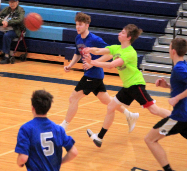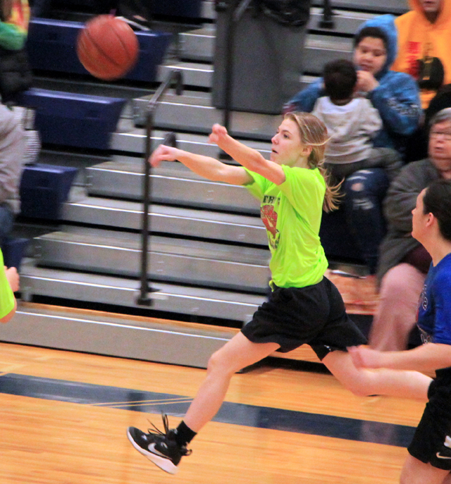 Sam Mager passes ahead to an open teammate at the All-Star Game Monday.