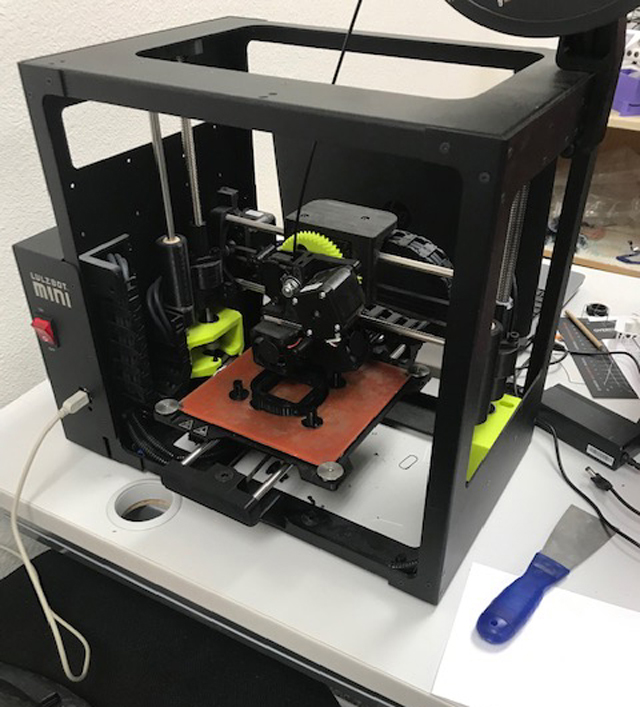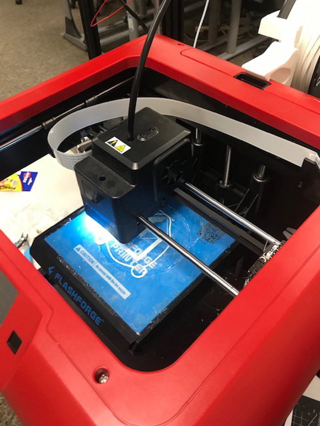 Martin on a 3D printer at PHS. It takes several hours to make each one.