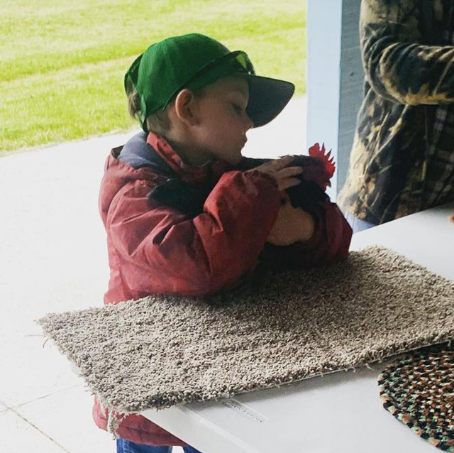 Cael Tacke and his rooster, Bumblebee, at the poultry clinic at the 4-H Spring Show. Photo by Susie Heckman. Click on the photo for a larger view.