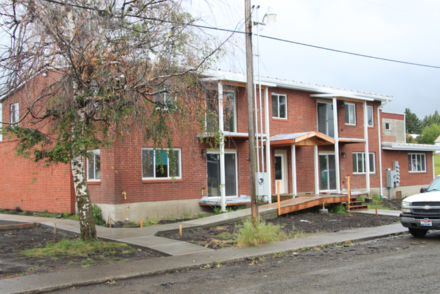 Work continues on the Sisters Apartments which are getting closer to completion with the entrance ramp having been built and outdoor decks for each of the apartments on the north side. Click on the photo for a larger view.