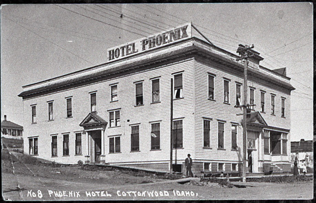 Last week we had a photo of the original location of the Cottonwood Report/Camas Prairie Chronicle. Above is the second location from about 1910ish to 1947 when the current building was completed. The dentist office and the Chronicle are now The Habit while the next two buildings down have been combined into the current Riener’s Grocery. We are guessing this photo is from the early 1910’s as the Chronicle changed its named to the Cottonwood Chronicle later in that decade. Seubert’s Insurance moved into the Chronicle location sometime after the Chronicle moved out and were there for many years. Photo courtesy of Don Kopczynski. Click on the photo for a  larger view.