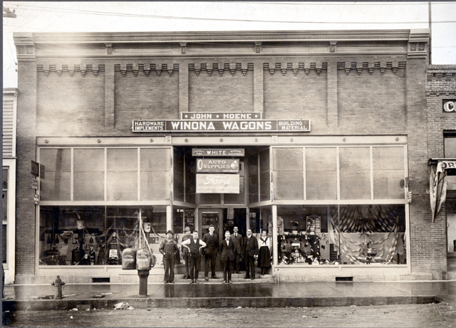 Herbeth and ?? Hattrup in front of Hoene Hardware possibly in the late