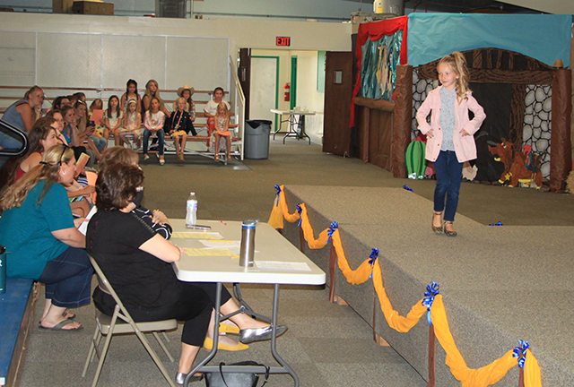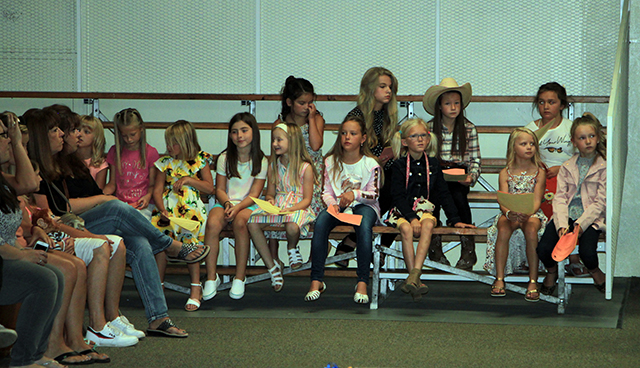 Cloverbud models line up and await their turn in front of the judges. Click on the photo for a larger view.