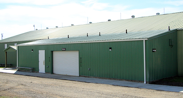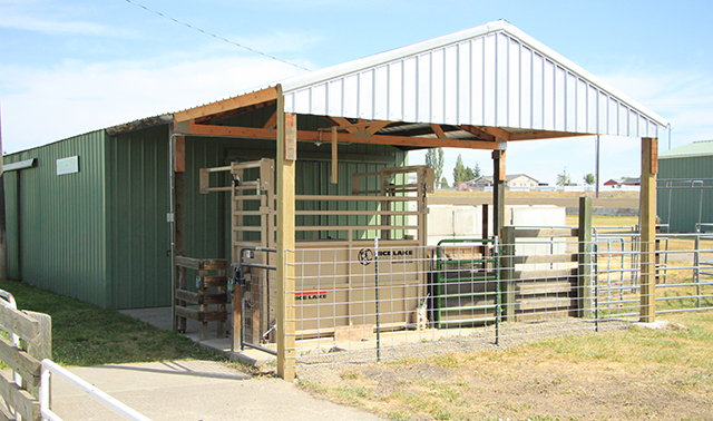 New at the Fair this year are a restroom addition on the north side of the Arena Building (above photo). This includes men’s and women’s bathrooms plus two family bathrooms that include a shower and a handicapped access toilet. Also new at the fair is a roof built over the livestock scales, shown at right. Click on each photo for a larger view.