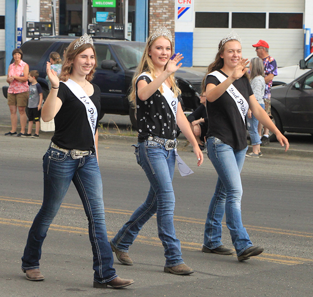 The 2021 Royalty followed the royalty float on the first pass through the parade. From left are first princess Olivia Klapprich, Queen Dani Sonnen and second princess Leann Lightfield.