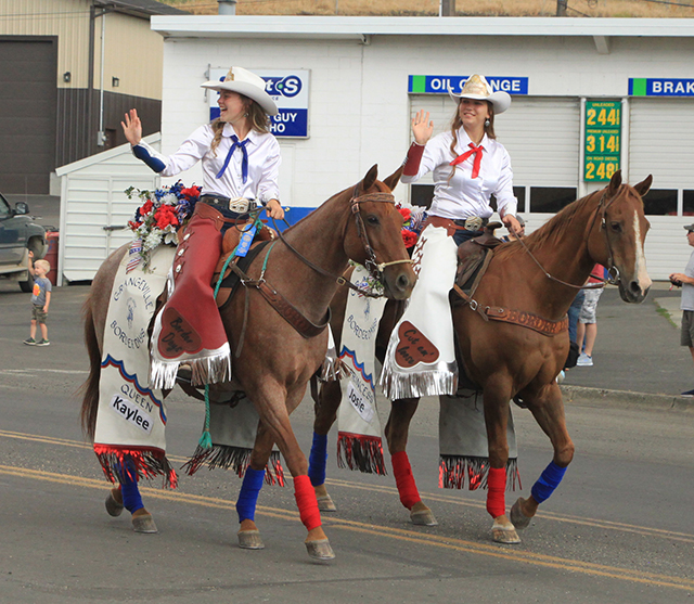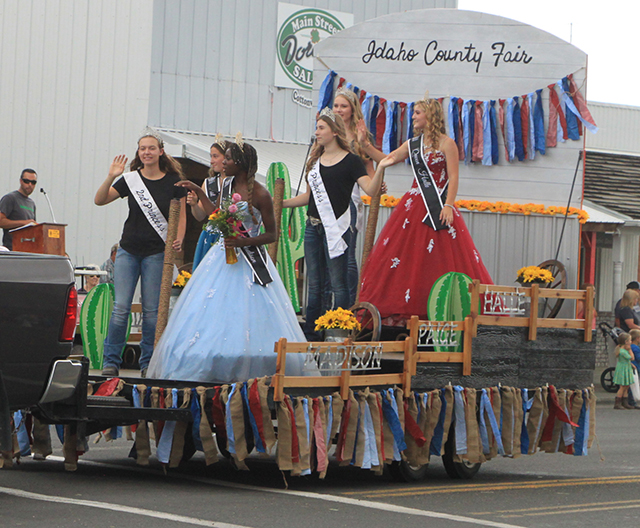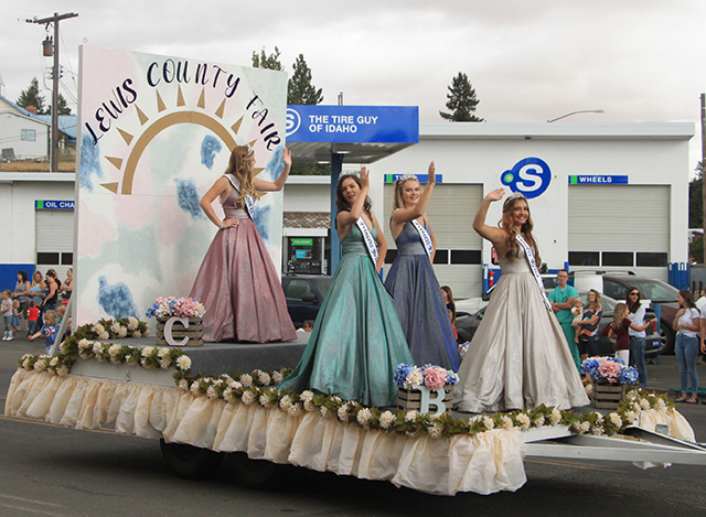 The winner of the Royalty Division, the Idaho County Fair Royalty float on the return trip with both the 2020 and 2021 Idaho County Fair Royalty on board.