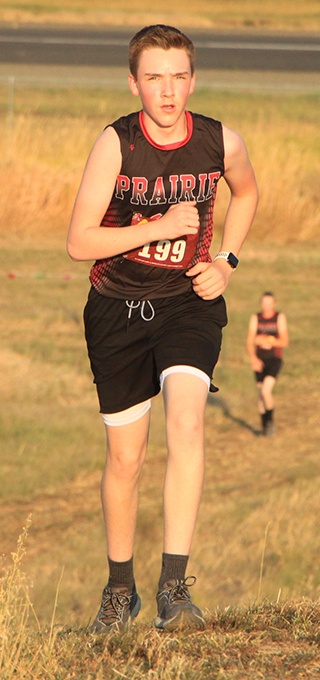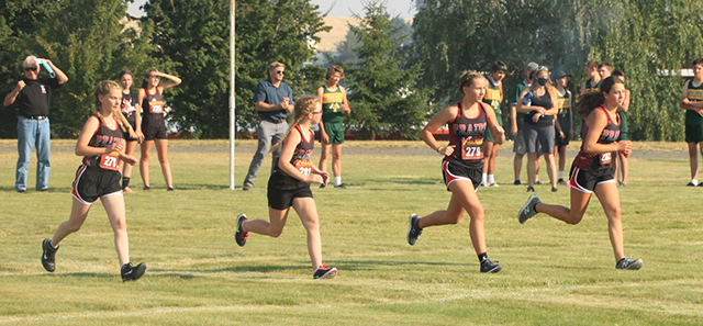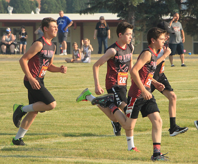 | Cross Country at Nezperce The high school boys were the only group able to field a full team at the Nezperce Invitational Cross Country Meet held Thursday, Sept. 10. The boys team finished third behind Potlatch and Troy with Tyler Wemhoff as the top finisher in 7th place with a time of 20:59. Zack Rambo placed 11th in 21:59. Lee Forsmann placed 25th in 23:41.9. Blake Uptmor was 29th in 26:25. Justin Lockett was 32nd in 27:56.9. Connor Brown was 33rd in 29:57. Zane Uptmor was 34th in 33:53 and Morgan Poxleitner was 35th in 33:54. The high school girls team had just 4 runners able to compete with Kerri Villamor as the top finisher in 12th in 27:21. Leann Lightfield wasn’t far behind Villamor as she placed 14th in 28:33. Katteri Duman was 21st in 30:50 and Meghan Fowler was 26th in 36:34. Mattie Lustig and Kyleigh Duclos were unable to compete. The junior high girls team was led by Rebecca Seubert, who placed 5th in 13:29. Ashlyn North was 7th in 14:36. Alaina Lustig was 12th in 15:02 and Clarise Rehder was 15th in 17:06. Morgan Pack was unable to compete. Kaden Duclos was the top finisher for the junior high boys as he placed 5th in 12:08. Cole Duclos placed 13th in 14:15. Ben Secrest started the race but had to retire due to an injury. The next meet for the team is this Thursday, Sept. 17 at Troy. The Jr. High girls race starts at 4 p.m. The Jr. High boys at 4:25. The high school girls start at 4:50 and the high school boys at 5:30 p.m. ![]() The start of the boys high school cross country race at Nezperce. From left for Prairie are Morgan Poxleitner, Zane Uptmor, Blake Uptmor, Justin Lockett, Connor Brown, Zach Rambo and Tyler Wemhoff. ![]() The start of the high school girls race. From left are Katteri Duman, Leann Lightfield, Kerri Villamor and Meghan Fowler. ![]() ![]() Prairie's top high school finishers. At left is Tyler Wemhoff, 7th in the boys race, and at right is Kerri Villamor, 12th in the girls race. ![]() ![]() Lee Forsmann and Leann Lightfield. ![]() ![]() Blake Uptmor and Katteri Duman. ![]() ![]() Justin Lockett and Meghan Fowler. ![]() ![]() Connor Brown and Zane Uptmor ![]() Morgan Poxleitner. ![]() The start of the Junior High boys race. From left are Cole Duclos, Ben Secrest and Kaden Duclos. ![]() The start of the junior high girls race. from left are Alaina Lustig, Clarise Rehder, Ashlyn North and Rebecca Seubert. ![]() Kaden Duclos was the top finisher for the junior high boys as he placed 5th. ![]() Rebecca Seubert placed fifth in the junior high girls race as the team's top finisher.