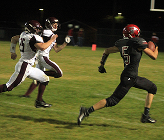 PIRATES BOYS FOOTBALL SCHEDULE FOR 2020A hyped up battle of unbeaten White Pine League teams quickly turned into a rout as the Prairie Pirates blew past Kamiah 72-6 at Cottonwood Friday, Oct. 2. ![]() Prairie received the opening kickoff, taking over at their own 34 after a 19 yard return by Brody Hasselstrom. Two runs by Hasselstrom netted 11 yards and a first down. After a 4 yard run by T.J. Hibbard, John Gehring somehow came away with a catch despite double coverage and picked up 34 yards to the Kamiah 17. Cole Schlader scored the game’s first points on the next play as he ran a keeper around the right side for the touchdown. The 2-point run was stopped short with Prairie leading 6-0. Kamiah netted -2 yards on their first possession and had to punt with the ball going out of bounds at the Prairie 40. A 13 yard run by Hasselstrom on second and 7 moved the ball into Kamiah territory at the 44. Hibbard gained 5 yards up the middle and then Hasselstrom took off around the left side and went 39 yards for his first touchdown of the night. The 2-point try again failed as Prairie took a 12-0 lead. A holding penalty plus a 9 yard loss on a pass completion with Gehring making the tackle led to another Kamiah punt. Prairie was called for roughing the punter giving Kamiah another set of downs. 2 incomplete passes and a 2 yard loss on a run led to Kamiah punting again with Prairie taking over at their own 35. Two Hasselstrom runs netted 11 yards and a first down. After Schlader was dropped for a loss he completed a screen pass to the left to Gehring that gained 12 yards and set up third and 1. Schlader picked up 3 yards on a sneak for the first down. A false start set the Pirates back but two plays later Schlader passed to a wide open Dalton Ross along the right sideline for an 18 yard gain to the Kamiah 27. Hasselstrom started up the middle then cut to the right and went 27 yards for his second touchdown on the next play. Schlader ran in the 2-pointer to make it 20-0 with 1:36 left in the first quarter. Kamiah finally put a drive together on their next possession picking up a pair of first downs as the moved the ball down to the Prairie 37. Facing fourth and 14, Kamiah quarterback Gabe Eades tried to pass for the first down but Schlader picked off the pass and returned it 5 yards to the Prairie 32. On Prairie’s first play a bad snap led to Schlader chasing after the ball. He went into scramble mode then spotted an open Hibbard downfield. Hibbard caught the pass and then proceeded to take the ball all the way to the end zone for a 68 yard play. Talk about turning a potential disaster into a huge play! Schlader then pass to Gehring for the 2-pointer to make it 28-0. Shane Hanson’s kickoff rolled into the end zone for a touchback and Eades fumbled on Kamiah’s first play from the 20. Matt Coppernoll recovered at the 20. Hibbard picked up 18 yards on a burst up the middle and Schlader finished off the drive with a run around the right side for a touchdown. Schlader passed to Hibbard for the 2-pointer to make it 36-0. Kamiah turned the ball over again on their next possession as Schlader made his second interception of the game at the Kamiah 40 and returned it to the 28. Prairie almost gave it right back as Schlader and Hasselstrom misfired on the handoff but Hasselstrom recovered the fumble and got back to the line of scrimmage. Hasselstrom picked up 9 yards on the next play and Hibbard converted the first down with a 5 yard gain up the middle. Hibbard gained 10 yards on the next play to set up first and goal at the 4. Hasselstrom scored on the next play. The 2-point pass fell incomplete as Prairie took a 42-0 lead. On their fourth straight possession Kamiah turned the ball over. This time it was another fumble with Dalton Ross recovering at the Kamiah 41. A false start set the Pirates back 5 yards but a 10 yard screen pass to Hibbard and a 9 yard run by Hasselstrom moved the ball to the 27. On third and 3 at the 20 Hasselstrom scored his fourth touchdown of the game. Schlader scored the 2-pointer but only after picking up his own fumble. That made it 50-0 with 4:19 still left in the half. Kamiah didn’t turn the ball over on their next possession but still had to punt the ball away. Hasselstrom received the punt and headed left then handed off to Dalton Ross coming back to the right. The return though wound up coming back on a penalty that set Prairie up at their own 15. After a 5 yard run by Jesse Cronan, Prairie started ripping off huge chunks of yardage on running plays. Hasselstrom gained 22 yards on a draw play. Schlader picked up 38 yards on a keeper to the left. Hasselstrom then finished off the drive as he went untouched the final 20 yards to the end zone. Schlader pass to Dalton Ross for the 2-pointer to make it 58-0 with 40 seconds left in the half. The entire second half was played with a running clock.Kamiah received the second half kickoff and gained just 5 yards before punting again. Prairie took over at their own 35 and needed just 5 plays to cover 65 yards. Schlader converted a third and 6 with a 19 yard run. Ravin Cronan picked up 6 yards then Hasselstrom took a pitch around right end and went 36 yards for his sixth touchdown of the night. Schlader passed to Lane Schumacher for the 2-pointer to make it 66-0. Kamiah was able to pick up a first down but then had to punt again. Prairie took over at their own 13 and sent the JV offense out on the field. Trenton Lorentz converted a couple of big plays including a 20 yard run and a 29 yard pass reception that moved the ball to the Kamiah 35. Ravin Cronan picked up 21 yards to set up a first down at the 13. On third and 8 backup quarterback Colton McElroy ran a keeper around right end for 11 yards and a touchdown. The 2-point try failed but Prairie now led 72-0 with 7:33 left in the game. Kamiah then put together their only scoring drive of the game as they took over at the Prairie 49 after a 26 yard kickoff return. A pair of first