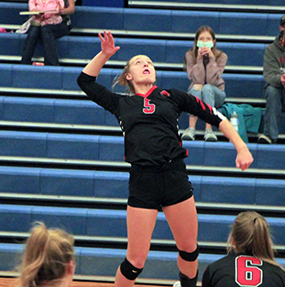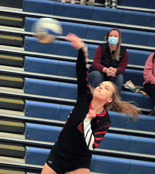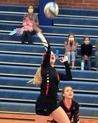 Uhlenkott served Prairie back within 1 point with 3 aces. Prairie couldn’t get over the hump to take the lead though as they fell back to as many as 5 points behind at 7-12 and 12-17. After an ace by Shears they got back within 1 point at 19-20 but again Genesee held them off, scoring the next 3 points and wound up winning the game by 4, 21-25. Prairie scored the first 2 points of the second game but Genesee came back took a 5-7 lead. Two kills by Prigge and an ace by Shears put Prairie back on top at 8-7 but that was the last time Prairie would lead in the game. A missed serve tied it and Genesee took the lead. Prairie tied it on a kill by Schlader but Genesee then scored the next 5 points. Genesee led by as many as 6 at 12-18 and 13-19. A missed Genesee serve opened an opportunity for Prairie and Schlader served an ace. A kill each by Forsmann and Prigge and another ace by Schlader cut the deficit to 1 at 18-19. Prairie managed to tie it at 20 on a kill by Schlader but Genesee answered and then scored the next 4 points to win by 5. In the third game Prairie fell behind early but with McWilliams serving turned a 4-7 deficit into a 9-7 lead. Prigge scored the sideout kill then McWilliams served 2 aces. Schlader and Lockett each added a kill. Genesee came back to tie it at 9 before Schlader scored a kill on a free ball for a 10-9 lead. After Genesee again tied it, a kill each by Schlader and Schwartz made it 12-10. That turned out to be Prairie’s last lead as Genesee scored 3 straight points to retake the lead. Prairie was able to tie it at 13, 14 and 16 but Genesee answered each time. At 16-16 Genesee scored the sideout then 4 more while serving for a 16-21 lead. Twice Prairie got back within 2 at 21-23 and 22-24 before Genesee ended their season. Schlader had 14 kills, 14 assists and 2 aces to lead Prairie. Prigge had 9 kills. Schwartz had 5 kills, 8 assists and 1 ace. Uhlenkott had 5 kills, including 2 blocks, with 2 assists and 3 aces. Lockett had 5 kills, including 1 block, with 2 assists and 1 ace. Shears had 5 kills, 5 assists and 2 aces. McWilliams had 1 kill, 4 assists and 3 aces. Forsmann had 1 kill. Prairie ends their season with a third place finish at District and a 15-7 overall record. The District tournament followed the chalk as there wasn’t a single match won by the lower seed. ![]() Ellea Uhlenkott serves against Kamiah at District. ![]() Madison Shears goes up for a spike against Kamiah. Also shown is Laney Forsmann. ![]() Delanie Lockett hits the ball against Kamiah.. ![]() Ellea Uhlenkott goes for a spike in the first Genesee match. Also shown are Hope Schwartz and Delanie Lockett. . ![]() Laney Forsmann spikes the ball in the first Genesee match. Also shown is Jade Prigge. ![]() Madison Shears goes for a tip in the first Genesee match. Also shown is Ellea Uhlenkott. ![]() Tara Schlader goes for a spike in the first Genesee match. ![]() Ellea Uhlenkott and Tara Schlader put up a wall in the Potlatch match played at Prairie. ![]() Hope Schwartz sets the ball against Potlatch. Behind her is Delanie Lockett. ![]() Madison Shears makes a pass in the 2nd Genesee match. At left is Sierra McWilliams. ![]() Sierra McWilliams passes a serve in the second Genesee match as Delanie Lockett looks on. ![]() Hope Schwartz bumps the ball over the net in the second Genesee match. Behind her is Laney Forsmann. SCHEDULE FOR 2020 SEPTEMBER 3-Kamiah,* here V/JV/V, 5 p.m., won 3 games to 1 and 3 games to 0 8-Logos*, here, JV/V,, 5 p.m., lost 2 games to 3 10-Potlatch*, there, C/JV/V, 5 p.m., lost 2 games to 3 14-Troy*, here,, JV/V, 6 p.m., lost 0 games to 3 15-Grangeville, there, C/JV/V, 5p.m., won 3 games to 1 17-Genesee*, there, C/JV/V, 5 p.m., lost 1 game to 3 21-CV, here, 2 C matches, 5 p.m., cancelled by CV 22-Lapwai*, here, V/JV/V, 5 p.m. postponed to Oct. 12 24-Logos*, there,, C/JV/V, 5 p.m., won 3 games to 2 29-Troy*, there, JV/V, 6 p.m., lost 1 game to 3 OCTOBER