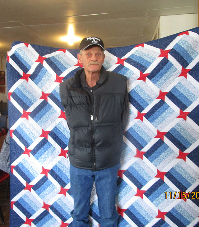 A quilt of valor by the Prairie Quilters was presented to Larry Walkup of Keuterville on November 15. Photo submitted by Judy Forsman. Click on the photo for a larger view.