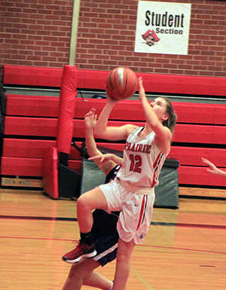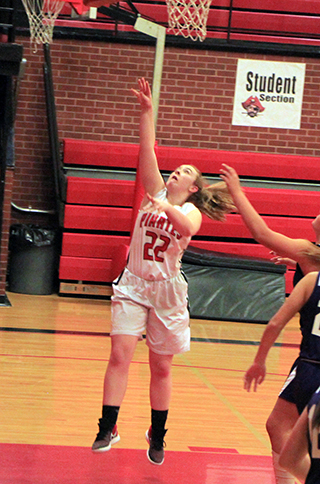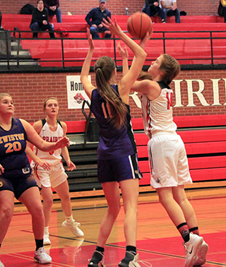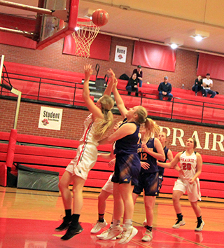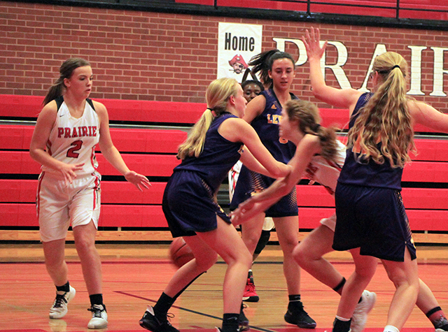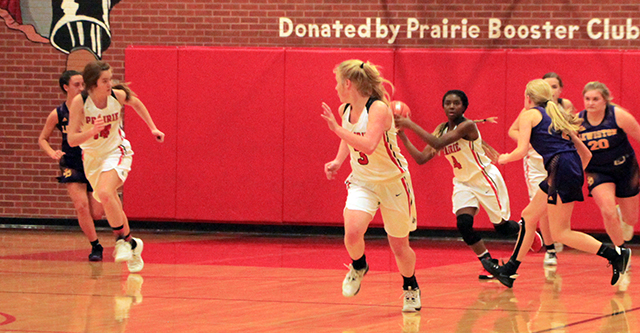 The Prairie Lady Pirates romped to a 59-24 win over the Lewiston JV Tuesday, Nov. 24 at Cottonwood. ![]() Tara Schlader had arguably her best game ever for the Lady Pirates with 20 points, 15 rebounds, 7 steals and 2 assists. Lewiston scored first in the game but that would be the only time they had the lead. Kristin Wemhoff tied it 48 seconds later with a full-court driving lay-up. Schlader then scored her first points on a putback for Prairie’s first lead of the game. Lewiston tied it at 4-4 with 2:50 left in the first quarter and Schlader put Prairie back in the lead for good with a free throw at the 2:26 mark. At that point Prairie threw their full-court press at Lewiston and finished the quarter with a 16-0 run as they forced numerous turnovers that led to easy baskets. It started with a steal by Delanie Lockett that led to a lay-up by Ellea Uhlenkott. A steal by Madison Shears led to another Uhlenkott lay-up. A steal by Uhlenkott led to a basket by Shears. A steal by Lockett led to a basket by Schlader. Hope Schwartz stole the ball and scored. A Lewiston turnover led to a basket by Schlader. Another steal by Schwartz led to a basket by Uhlenkott and Uhlenkott closed out the quarter with a putback for a 21-4 lead. Uhlenkott had scored 8 and Schlader 7 points in the quarter. Prairie pulled off the press in the second quarter and they were actually outscored 11-12 by the Bengals. Lockett was Prairie’s leading scorer in the second quarter with 4 points while Uhlenkott scored 3 and Shears and Schlader 2 each. Prairie led 32-16 at the half. Prairie dominated the third quarter as they outscored the Bengals 20-0 to take a 52-16 lead into the fourth quarter. Lewiston was 0 for 8 from the field. Schlader stepped up her scoring in the quarter with 9 of Prairie’s 20 points as she connected on 4 of 6 shots including a 3-pointer. Lewiston had ended the first half with a buzzer-beating 3-pointer. Their first points of the second half came 20 seconds into the fourth quarter, also on a 3-pointer. Prairie answered with a 7-0 run under the fourth quarter running clock to take their biggest lead of the game a t 59-19. Lewiston scored the final 5 points to cut the final margin to 35. Uhlenkott also had her biggest scoring game of the season with 13 points. Lockett scored 6 while Wemhoff, Shears and Schwartz each scored 4. Laney Forsmann and Trinity Martinez scored 3 each with Molly Johnson scoring 2. Prairie dominated on the boards 44-29. In addition to Schlader’s big game on the boards, Wemhoff also had double figures with 10 rebounds. Shears also had 7 steals with 4 assists. Uhlenkott had 5 steals and 5 assists. Prairie forced the Bengals into 34 turnovers while committing 19. The Lady Pirates were 26 for 61 from the field, 43%, and 6 for 20 at the line, 30%. Lewiston was 8 for 37 from the field, 22%, and 5 for 5 at the line. Prairie is now 3-0 on the season. The Prairie JV team had a big win, 42-13, over a Lewiston freshman team that struggled to find the basket when they weren’t turning the ball over. Prairie never trailed as Olivia Klapprich started the scoring with a steal and drive to the hoop. Ali Rehder followed with a baseline shot for a 4-0 lead. Lewiston’s only point of the opening quarter came at the free throw line. Prairie then scored the next 6 points to take a 10-1 lead at the end of the period. Klapprich and Rehder each added a basket and Isabella Walsh scored the other basket. Prairie scored the first 8 points of the second quarter to push their lead to 18-1 before Lewiston finally scored their first basket. Klapprich and Taylor Riener each scored a lay-up. Riley Enneking scored 2 free throws and Alli Geis scored a lay-up to make it 18-1. Lewiston’s first basket came with 2:42 left in the half and Riener quickly answered with a lay-up. Lewiston added a free throw and a basket before Enneking scored on an inbounds play to make it 22-6 at the half. The third quarter saw Prairie shut out the Bengals 12-0. Rehder scored 4 points while Klapprich, Enneking, Gracie Farr and Riener each scored 2 points. Lewiston broke their scoring drought with a free throw to open the fourth quarter scoring. Prairie answered with a basket by Klapprich, a free throw by Rehder and another basket by Klapprich for a 39-7 lead that started the running clock. Lewiston actually outscored Prairie 3-6 over the final 4 minutes. Klapprich wound up leading Prairie in scoring with 12 points and had outscored Lewiston all be herself until a Lewiston basket with 1:10 to play gave them 13. Rehder scored 9 points with Enneking and Riener scoring 6 each. Farr scored 5 while Walsh and Geis scored 2 each. Prairie had a 30-24 edge on the boards led by Enneking who had 10 rebounds while Geis added 9. Klapprich had 7 steals and 3 assists while Rehder and Enneking had 6 steals each as Prairie forced Lewiston into 34 turnovers. Rehder and Walsh each had 2 assists. Prairie was 19 for 43 from the field, 44%, and 4 for 10 at the line, 40%, while Lewiston was 5 for 25 from the field, 20%, and 3 for 14 at the line, 21%. Prairie 21 11 20 7 -59 Lewiston JV 4 12 0 8 -24 Prairie-Lockett 3-8, 0-2, 6; Wemhoff 2-5, 0-1, 4; Shears 1-5, 2-4, 4; Uhlenkott 6-13, 1-4, 13; Schlader 9-14, 1-4, 20; Schwartz 2-8, 0-0, 4; Johnson 1-1, 0-0, 2; Forsmann 1-6, 1-3, 3; Martinez 1-1, 1-2, 3; Klapprich 0-0, 0-0, 0; Rehder 0-0, 0-0, 0. 3-pointers-Schlader. Lewiston JV-Albright 5-13, 3-3, 15; Arellano 0-3, 2-2, 2; Riddle 0-1, 0-0, 0; Kessinger 0-5, 0-0, 0; Burke 1-5, 0-0, 2; Jackson 0-2, 0-0, 0; Pea 1-3, 0-0, 3; Patterson 1-3, 0-0, 2; Barney 0-2, 0-0, 0. 3-pointers-Albright 2, Pea. ![]()