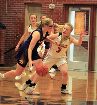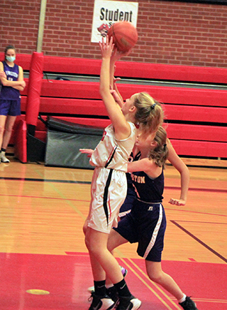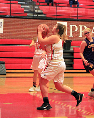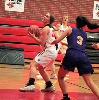 Tara Schlader passes out of a triple team in the post to an open Delanie Lockett who scored a lay-up.