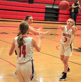 Madison Shears shoots and hits one of her two big 3-pointers in the third quarter against Grangeville.