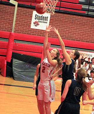 Ellea Uhlenkott scores a lay-up against Grangeville. ![]() Delanie Lockett looks to pass against Grangeville. ![]() Kristin Wemhoff makes a pass to Delanie Lockett in the Grangeville game. ![]() Delanie Lockett scores a lay-up against Grangeville. ![]() Ali Rehder and a Grangeville player battle for a loose ball in the JV game against Grangeville. Also shown are Alli Geis, Gracie Farr and Isabella Walsh. ![]() Chloe Rowland passes to Alli Geis in the JV game against Grangeville. ![]() Isabella Walsh puts up a shot in the JV game against Grangeville with the Prairie student section behind her. ![]() Sarah Lustig looks to pass in the JV game against Grangeville. ![]() Taylor Riener with the ball in the JV game against Grangeville.
