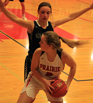 pull away for the win.Grangeville’s Bailey Vanderwall opened the scoring but Prairie took the lead when Lockett connected on 3 of 4 free throws. The lead didn’t last long as Grangeville’s Camden Barger scored a basket and 2 free throws and Macy Smith added a basket for a 3-8 Grangeville lead. A free throw by Lockett was answered by 2 from Barger for a 4-10 Grangeville lead. Uhlenkott finally scored Prairie’s first basket at the 3:13 mark with a drive to the hoop and Shears followed with a drive to the hoop to pull the Pirates within 8-10. A basket by Vanderwall was answered by two free throws by Shears. Barger scored with 1:55 left but Prairie came back to tie it on a basket each by Wemhoff and Shears as the first quarter ended at 14-14. Barger had scored 8 of Grangeville’s 14 first quarter points but would attempt only 4 shots and score on 2 second quarter free throws the rest of the game. Grangeville’s Zoe Lutz put Grangeville back on top but Uhlenkott tied it with 2 free throws. A defensive rebound by Wemhoff led to the go-ahead basket by Lockett. Lockett then fed Uhlenkott for a lay-up and a 20-16 lead with 23 seconds left in the half. Barger scored 2 free throws with 8 seconds left to make it 20-18 at the half but those would be her final 2 points of the game. Vanderwall and Lutz each scored to open the second half and put Grangeville back on top but Lockett tied it with a lay-up at the 5:55 mark and a minute later put Prairie back on top with 2 free throws. Shears then hit a big 3-pointer with 4:31 left for a 27-22 lead. Grangeville scored 2 baskets to cut the lead to 1 at 27-26 but a steal by Schlader led to a basket by Uhlenkott and then Shears fed Lockett for a backdoor lay-up to put Prairie back up by 5. Shears then hit her second 3-pointer of the quarter to give Prairie a 34-26 lead after 3 quarters. Foul trouble was starting to be felt on both side. Schlader sat out much of the first half after picking up 3 quick fouls and by the end of the third quarter both she and Uhlenkott had picked up their fourth. Meanwhile Barger, Talia Brown and Smith were all in foul trouble for Grangeville. Schlader scored a free throw to open the fourth quarter and a huge 3 pointer by Lockett put Prairie up by 12 points with 5:35 to play. A 2-8 run by Grangeville pulled the Bulldogs back with 6 with 2:18 left to play but they would get no closer. In fact that was the last time they would score as Prairie scored the final 9 points of the game. After a basket by Uhlenkott, the final 7 points of the game all came at the free throw line with Shears going 4 for 4 and Wemhoff 3 for 4. Shears wound up leading all scorers with 18 points with Lockett adding 15 and Uhlenkott 10. Wemhoff scored 5 and Schlader 1. An oddity of the game was that each team’s 5 starters were the only players to score, neither team had any bench points. Vanderwall led Grangeville with 12 points while Barger had 10. Prairie controlled the boards 44-31 led by Wemhoff with 12. Lockett had a double-double with 10 rebounds and Schlader added 9. Schlader and Uhlenkott had 3 steals each while Shears had 3 assists with Wemhoff and Lockett picking up 2 assists each. Prairie was 14 for 36 from the field, 39%, and won the game at the free throw line where they were 18 for 27, 67%. Grangeville was 14 for 59 from the field, 24%, and 6 for 8 at the line, 76%. Despite all the Prairie foul trouble with 3 players winding up with 4 fouls, Grangeville did not even attempt a free throw in the second half. In the JV game Grangeville scored first but that was the only time Prairie was behind as they went on to win 32-18. After Grangeville’s 0-2 start, Prairie scored the next 10 straight points with 6 of those by Prigge. Walsh and Rehder each added a basket. After a Grangeville basket, Rehder closed out the first quarter scoring with 2 free throws for a 12-4 lead. Klapprich scored the first 4 points of the second quarter before Grangeville answered with a 3. After a free throw by Sarah Lustig, Grangeville closed out the first half scoring with 4 straight points cutting Prairie’s lead to 17-11 at the half. The third quarter was all Prairie as the Pirates outscored Grangeville 9-0 to take a 26-11 lead into the fourth quarter. Rehder and Klapprich did all the scoring as each hit a 3-pointer while Rehder added a 2-point basket and Klapprich a free throw. Grangeville broke the scoring drought by opening the fourth quarter with a basket but Geis answered with a putback. 3 Grangeville points were answered with a basket each by Walsh and Rehder before Grangeville scored the game’s final points with 2:13 to play. Rehder scored 11 to lead all scorers. Klapprich scored 8 with Prigge scoring 6, Walsh 4, Geis 2 and Lustig 1. Prairie controlled the boards 42-25 with Prigge pulling down 9 to lead all rebounders. Enneking added 8 rebounds and Geis 6. Prigge and Klapprich each had 2 steals and Klapprich had 4 assists. Prairie was 13 for 48 from the field, 27%, and 4 for 8 at the line, 50%. Grangeville was 7 for 36 from the field, 19%, and 3 for 4 at the line, 75%. Prairie 14 6 14 15 -49 Grangeville 14 4 8 8 -34 Prairie-Lockett 4-12, 6-8, 15; Wemhoff 1-5, 3-6, 5; Shears 5-10, 6-7, 18; Uhlenkott 4-8, 2-3, 10; Schlader 0-0, 1-3, 1; Martinez 0-0, 0-0, 0; Forsmann 0-1, 0-0, 0. 3-pointers-Shears 2, Lockett. Grangeville-Barger 2-9, 6-6, 10; Smith 2-15, 0-0, 4; Brown 1-6, 0-0, 2; Lutz 3-11, 0-0, 6; Vanderwall 6-14, 0-1, 12; Green 0-1, 0-0, 0; Edwards 0-2, 0-0, 0; Dame 0-1, 0-0, 0. 3-pointers-none. ![]()