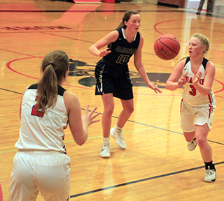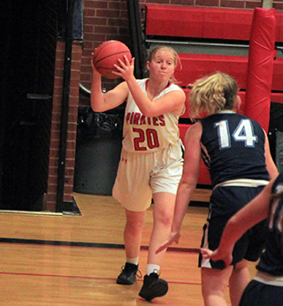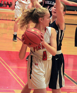 In the game against new league opponent Logos, Prairie jumped out to a 19-0 lead and coasted to the big win.The Pirates forced 14 first quarter turnovers and limited Logos to just 5 shot attempts and held them scoreless until there were just 24 seconds left in the opening quarter. Madison Shears got Prairie off to a hot start with a 3-pointer and added a 2-point basket after Ellea Uhlenkott had driven to the hoop for a lay-up. Tara Schlader made a free throw, Kristin Wemhoff scored after a steal and Delanie Lockett scored as Prairie spread out their scoring. Uhlenkott made 2 free throws, Schlader added another free throw and Wemhoff scored a pair of lay-ups to make it 19-0. After Logos finally scored, Shears added a free throw to make it 20-2 at the end of the quarter. Laney Forsmann opened the second quarter scoring with a 3-pointer. After Logos scored a pair oi free throws, Prairie went on an 8-0 run. Uhlenkott, Trinity Martinez and Lockett each scored a basket and Schlader and Lockett each added a free throw for a 31-4 lead. Logos scored a basket to make it 31-6 at the half. The defensive intensity propped off for Prairie in the second half and Logos was able to scored 8 points. The Pirates scored 13 though to give them a 30-point margin after 3 quarters and invoke the running clock for the entire fourth quarter. Shears and Wemhoff each scored 2 baskets in the third quarter while Martinez sank a 3-pointer and Uhlenkott added a basket. Prairie outscored the Knights 6-2 in the fourth quarter as Shears, Uhlenkott and Forsmann each scored 2 points. Shears led 3 players in double figures with 12 points while Wemhoff and Uhlenkott each scored 10. Lockett, Forsmann and Martinez each scored 5 points and Schlader scored 3. Prairie had a 40-26 advantage on the boards led by Schlader with 9 rebounds. Lockett added 7 while Uhlenkott and Forsmann had 6 each. Shears and Schlader each had 4 steals while Wemhoff and Molly Johnson each had 3. Lockett had 5 assists and Uhlenkott had 3 assists. Prairie was 19 for 58 from the field, 33%, and 9 for 25 at the line, 36%. Logos was 7 for 25 from the field, 28%, and 2 for 4 at the line, 50%. Prairie also won the JV game easily, 43-15. It took awhile for the offense to get going as Alli Geis scored the game’s first points at the 5:05 mark of the first quarter. Logos answered 20 seconds later to tie the score then Prairie took the lead for good on a pair of free throws by Ali Rehder at the 4:26 mark. Olivia Klapprich scored on an inbounds feed from Isabella Walsh and Riley Enneking made it 8-2. A basket by Logos made it 8-4 at the end of the first quarter. A steal and ensuing lay-up by Walsh opened the second quarter scoring. After a Logos basket, Prairie answered with a 6-0 run. Jade Prigge, in her first action since joining the team, scored on a putback and Klapprich followed with a steal and lay-up and scored another lay-up after a steal by Prigge for a 16-6 lead. After a free throw and a basket by Logos, Prairie ended the half with another 6-0 run for a 22-9 halftime lead. Rehder and Klapprich each scored a lay-up after stealing the ball and Prigge scored inside on a feed from Rehder. Prairie outscored Logos 19-2 in the third quarter although Logos helped them with a lay-up into Prairie’s basket about halfway through. Klapprich, Enneking and Rehder each scored a basket to make it 28-9. Logos then scored their only basket that counted for them at the 6:05 mark. Enneking scored on a drive to the hoop and Prigge scored on a putback. Prairie’s next 2 points came after Rehder missed two free throws. Logos rebounded and Prairie all went down to set up the defense. The Logos rebounder then turned, dribbled once and scored a lay-up for Prairie. Rehder was credited with the 2 points for Prairie. The Pirates then added 7 more points to finish the quarter on a 13-0 run and invoke the running clock for the fourth quarter with a 41-11 lead. Only 3 baskets were scored in the fourth quarter with Walsh scoring for Prairie against 2 baskets by Logos. Rehder and Klapprich each scored 10 points to lead Prairie with Enneking and Prigge adding 6 points each. Walsh and Taylor Riener scored 4 each with Geis scoring 2 and Chloe Rowland 1. Prairie had a 28-25 edge on the boards with Walsh grabbing 10 rebounds to lead the team. Enneking added 7. Klapprich was 1 steal shy of a double-double with 9 steals while Rehder had 5 and Prigge 4. Rehder had 3 assists while Walsh and Klapprich had 2 each. The JV’s were 21 for 41 from the field, 51%, and 3 for 10 from the line, 30%. Logos was 7 for 31 from the field, 23%, and 1 for 10 at the line, 10%. Prairie 20 11 13 6 -50 Logos 2 4 8 2 -16 Prairie-Lockett 2-7, 1-4, 5; Wemhoff 5-10, 0-0, 10; Shears 4-10, 3-4, 12; Uhlenkott 4-12, 2-4, 10; Schlader 0-7, 3-8, 3; Johnson 0-3, 0-2, 0; Forsmann 2-3, 0-2, 5; Martinez 2-4, 0-1, 5; Prigge 0-0, 0-0, 0; Rehder 0-1, 0-0, 0. 3-pointers-Shears, Forsmann, Martinez. Logos-Casebolt 0, 0-0, 0; Johnson 0, 0-0, 0; L. Wilson 3, 0-2, 6; Michaels 0, 0-0, 0; Meyer 0, 0-0, 0; Wambeke 2, 0-0, 4; A. Wilson 0, 0-0, 0; Vis 2, 0-0, 4; J. Urqidez 0, 0-0, 0; L. Urquidez 0, 2-2, 2. 3-pointers-none.