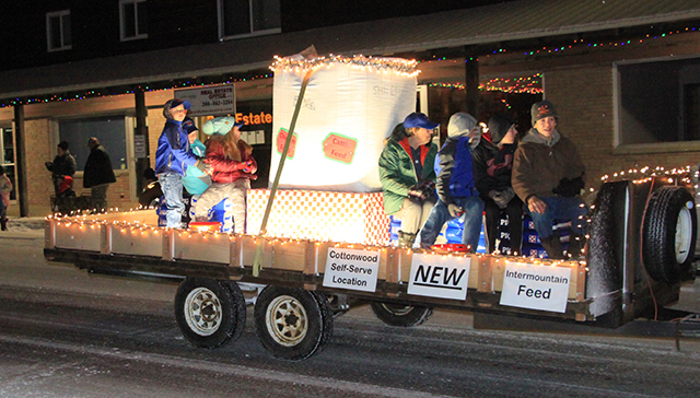 ![]() The Cottonwood American Legion and VFW entry. ![]() The Cottonwood Saddliers 4-H Club not only sponsored the Lighted Christmas Parade but also had a float. ![]() The Tri-Parish Youth Group had a rolling Nativity Scene and sang Christmas Carols during the parade. ![]() Intermountain Feed had a parade entry. ![]() The Clearwater Valley Rodeo Association Royalty in the Parade. ![]() Santa greeted people on his way into Santa's Cabana after getting off the firetruck. ![]() There was a very long line of youngsters with their parents waiting to visit with Santa Claus.