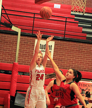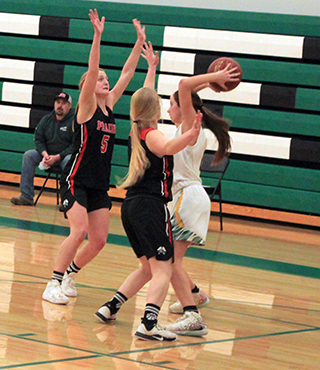 C.V. broke the run with a basket but Prairie answered with a putback by Shears and a lay-up by Uhlenkott. After another C.V. basket, Kristin Wemhoff scored a basket and Shears closed out the first quarter scoring with another 3. C.V. sophomore Shada Edwards burned Prairie several times on backcuts for lay-ups as she scored 8 of C.V.’s first 10 points. She opened the second quarter scoring with one of those lay-ups but Prairie responded with 6 straight points. Uhlenkott scored a pair of baskets and Schlader and Lockett each added a free throw. After Edwards’ fourth basket made it 26-10, Lockett sank a 3. After a C.V. free throw, the Pirates scored 9 straight points for a 38-11 lead. Trinity Martinez scored and Locket then hit another 3. Wemhoff closed out the run with 2 free throws and then a lay-up after a steal. A basket each by Schlader and Wemhoff against 2 free throws and a 3-pointer by C.V. made it 42-16 at the half. Shears scored the first 9 points of the second half as she scored a short jumper, a putback, a 3 and a lay-up for a 51-16 lead. After a C.V. basket Prairie had a 10-0 run. Molly Johnson scored to open the run followed by a 3 from Hope Schwartz. Wemhoff scored a lay-up and Schwartz finished the run with another 3. After another C.V. basket, Prairie finished the third quarter with a 7-0 run to take a 68-20 lead. A Johnson free throw was followed by a basket by Martinez. Shears scored after a steal and Schwartz hit a lay-up at the buzzer. Schwartz scored her third 3 of the game to open the fourth quarter which was played with a running clock. Wemhoff and Jade Prigge each scored for a 75-20 lead. Edwards followed with 4 points for C.V. that were answered with 2 free throws each by Uhlenkott and Prigge. Edwards scored the game’s final points as Prairie won by 53. Shears had 19 points to lead Prairie in scoring. The Pirates put 5 players in double figures as Wemhoff scored 12, Schwartz and Lockett 11 each and Uhlenkott 10. Schlader scored 5 with Martinez and Prigge adding 4 each and Johnson 3. Prairie had a 37-29 edge on the boards led by Schlader who had 12 rebounds. Uhlenkott had 5 steals and 7 assists. Shears and Schlader each had 4 assists. Prairie was 29 for 61 from the field, 48%, and 11 for 18 at the line, 61%. C.V. was 10 for 35 from the field, 29%, and 5 for 8 at the line, 63%. There was no JV game. Prairie 20 22 26 11 -79 C.V. 6 10 4 6 -26 Prairie-Lockett 3-7, 3-4, 11; Wemhoff 5-8, 2-2, 12; Shears 8-14, 0-0, 19; Uhlenkott 4-9, 2-2, 10; Schlader 2-4, 1-6, 5; Schwartz 4-7, 0-0, 11; Johnson 1-2, 1-2, 3; Forsmann 0-3, 0-0, 0; Martinez 2-5, 0-0, 4; Prigge 1-2, 2-2, 4; Rehder 0-0, 0-0, 0; Klapprich 0-0, 0-0, 0. 3-pointers-Shears 3, Schwartz 3, Lockett 2. C.V.-Edwards 6-13, 2-4, 14; M. Smith 2-3, 0-0, 5; Schilling 1-2, 1-2, 3; To. Yocum 0-2, 2-2, 2; Tr. Yocum 1-8, 0-0, 2; Simmons 0-5, 0-0, 0; Lundgren 0-1, 0-0, 0; R. Smith 0-0, 0-0, 0; Martin 0-0, 0-0, 0. 3-pointers-M. Smith. Vs. Kamiah