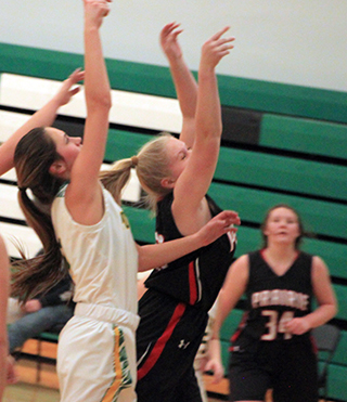Kristin Wemhoff gets double-teamed by C.V.. ![]() Laney Forsmann puts up a shot against C.V. ![]() Delanie Lockett drives past a Potlatch defender. ![]() Ellea Uhlenkott and Kristin Wemhoff trap a Potlatch player in the backcourt. ![]() Ellea Uhlenkott puts up a shot at Potlatch. ![]() Tara Schlader goes for a rebound at Potlatch. ![]() Alie Rehder passes to Olivia Klapprich in the JV game at Potlatch. ![]() Riley Enneking goes for a rebound in the JV game at Potlatch as Jade Prigge watches. ![]() Sarah Lustig battles for a rebound in the JV game at Potlatch as Isabella Walsh looks on.