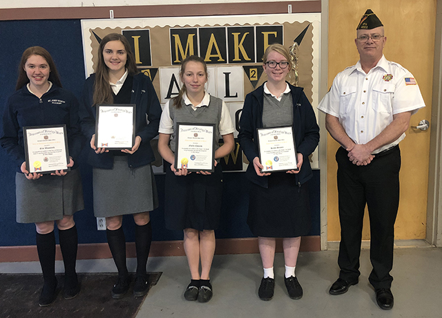 for Post 4902 were St. John Bosco Academy students. From left are Erin