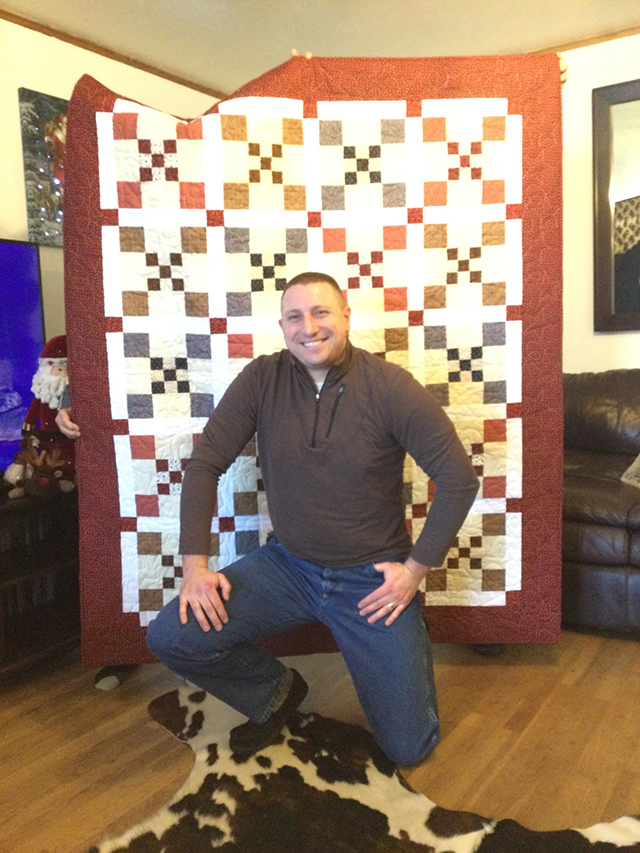 Judy Forsman, Lynn Sonnen and Milton Baerlocher presented the Quilts of