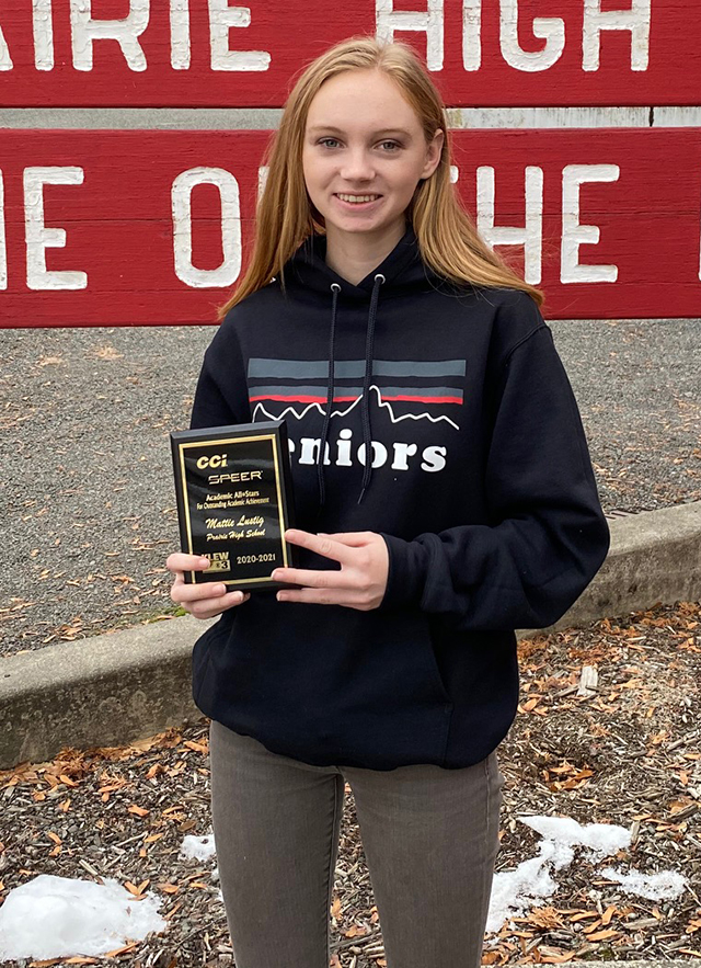 with her KLEW Academic All-Star plaque. She was interviewed by