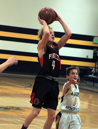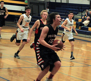 In a showdown for second place in the league, Prairie trailed for only 18 seconds against Kamiah.The Kubs scored first but 18 seconds later Cole Schlader scored a lay-up to tie it. A little over a minute later Prairie took the lead for good when Schlader converted a 3-point play to make it 5-2. After Kamiah pulled within 1, Zach Rambo made a free throw and then scored a lay-up to make it 8-4. Schlader followed with a drive to the hoop to make it 10-4. Not long after, Schlader picked up his second foul and went to the bench. After a Kamiah basket, Brody Hasselstrom made the first of what would be 4 first half 3-pointers, to make it 13-6. After a pair of Kamiah baskets, Rambo finished off the first quarter scoring when he scored a lay-up to make it 15-10. Kamiah opened the second quarter scoring but Prairie answered with a basket by Tyler Wemhoff and Hasselstrom’s second 3 of the game. After another Kamiah basket, Hasselstrom hit another 3. At that point he was 3 for 3 from the field, all of which were 3-pointers. Rambo followed with a basket to make it 25-14. The Kubs scored a pair of free throws when Schlader picked up his third foul with 3:05 left in the half. Lane Schumacher hit a 3 and Hasselstrom followed with his fourth 3 of the half for a 31-16 lead with 2:03 left to play. Kamiah answered with a 3 of their own and added a basket to pull within 31-21 at the half. Schlader started the second half and after a Kubs basket, converted a 3-point play. Kamiah scored a pair of baskets to cut the lead to 7 at 34-27 but Schlader answered with a pair of free throws. 15 seconds later Schlader picked up his fourth foul and went to the bench for the rest of the quarter. Kamiah then put together a 1-8 run to cut the lead down to 2 at 37-35 with 3:09 left in the third. Schumacher broke the run with a basket and followed with a pair of free throws. Rambo added 2 free throws to push the lead back to 8 at 43-35. After a Kamiah basket, Hasselstrom hit his fifth 3-pointer of the game to give Prairie a 46-37 lead. A Prairie foul as the quarter ended gave Kamiah 2 free throws to make it 46-39 heading into the fourth. A pair of Kamiah baskets pulled the kubs within 3 at 46-43 but Rambo answered with a 3-point play. After Kamiah again cut the lead to 3 at 50-47, Schlader sank both ends of a double bonus. Kamiah answered but Rambo converted a 3-point play to put the lead back at 6, 55-49. 3 times, Kamiah scored to cut the lead to 4 but each time Prairie answered. Rambo with a drive for a lay-up, Wemhoff with 2 free throws and then a free throw by Kyle Schwartz and 2 by Rambo to make it 62-58 with 1:46 left. A free throw and a basket by the Kubs got them within 4 again but they got no closer as Wemhoff closed out the scoring with a free throw for a 5-point win. Rambo wound up with 20 points to lead the scoring while Hasselstrom added 15 on five 3-pointers. Schlader scored 14 despite being on the floor for less than a full quarter due to foul trouble. He was efficient while he was playing though as he was 4 for 5 from the field and 6 for 6 at the line. Schumacher scored 7, Wemhoff 6 and Schwartz 1. Kamiah had a 32-38 edge on the boards. Wemhoff led the Pirates with 9 rebounds while Schumacher had 7. Wemhoff, Schwartz, Rambo and Schumacher each had a steal and Wyatt Ross had 4 assists. Prairie was 18 for 48 from the field, 38%, and 21 for 29 at the line, 72%. Kamiah was 24 for 55 from the field, 44%, and 9 for 17 at the line, 53%. Kamiah won the JV game 30-38 with the second quarter being the difference. The Kubs outscored the Pirates 2-10 in the second quarter and that gave them their margin of victory. Prairie got on the board first in the game as Travis Alfrey made 2 free throws. Kamiah answered with 2 baskets but Prairie tied it on a lay-up by Lee Forsmann. Kamiah then took the lead for good with a 3-pointer. Shane Hanson scored to make it 6-7 at the end of the first quarter. Kamiah started the second quarter with a 0-8 run as Prairie was scoreless until Hanson made a lay-up with 2:05 left in the half. Kamiah added another basket for an 8-17 halftime lead. The Kubs extended the lead to 13 with a pair of baskets to open the second half. Prairie then put together a 9-2 run to cut the lead down to 6. Forsmann had a pair of baskets in the run with Colton McElroy converted a 3-point play and Levi Walsh a putback. Kamiah then score to take a 17-25 lead into the fourth quarter. Twice in the fourth quarter Prairie was able to get within 4 points. The first at 23-27 as they opened the quarter with a 6-2 run with Forsmann scoring 4 of those 6 points and Weston Riener the other 2. Kamiah answered with a 0-5 run but a 3-pointer and then a lay-up by Forsmann again cut the lead to 4 at 28-32 with 1:50 to play. A 0-6 run by Kamiah then put the game away with Hanson scoring just before the buzzer for the final 8 point margin. Forsmann wound up with 15 points and 12 rebounds to lead the team in both categories. Hanson scored 6 with McElroy scoring 4 and Alfrey, Walsh and Riener each scored 2. Kamiah had a 33-36 rebounding edge. Alfrey had 4 steals and 3 assists. Prairie was 11 for 39 from the field, 28%, and 7 for 16 at the line, 44%. Kamiah was 15 for 50 from the field, 30%, and 3 for 10 at the line, 30%. Prairie 15 16 15 17 -63 Kamiah 10 11 18 19 -58 Prairie-Schlader 4-5, 6-6, 14; Ross 0-1, 0-0, 0; Rambo 6-14, 8-11, 20; Schumacher 2-7, 2-4, 7; Wemhoff 1-6, 4-6, 6; Hasselstrom 5-13, 0-0, 15; Schwartz 0-2, 1-2, 1. 3-pointers-Hasselstrom 5, Schumacher. Kamiah-Wheeler 1, 0-0, 2; Keen 1, 0-2, 2; Krogh 2, 1-2, 5; Wilkins 0, 0-0, 0; Skinner 2, 0-1, 5; DeGroot 0, 0-0, 0; Cox 10, 2-3, 22; Mercer 2, 1-3, 5; Sams 5, 5-6, 15; Norman 1, 0-0, 2. 3-pointers-Skinner. At Logos
