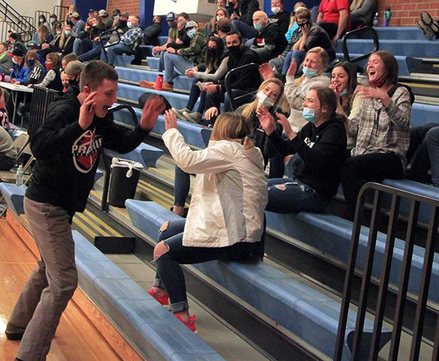 Wemhoff leads a cheer for several members of the girls basketball team