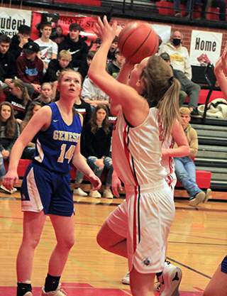 Kamiah got together Monday for an extra game. Kamiah’s JV team had beaten Prairie 2 weeks ago and Prairie was looking for some payback.The game was back and forth in the first quarter until Prairie put together an 8-0 run that turned a 9-8 lead into a 17-8 lead. Klapprich and Prigge each scored 4 points in that run. Kamiah then scored to make it 17-10 as the quarter ended. Klapprich had scored 9 and Prigge 8 in the quarter. The second quarter saw Prairie’s offense go into hibernation as they scored just 2 points on a basket by Rowland at the 5:25 mark. Kamiah scored 10 in the quarter to take a 19-20 halftime lead with the go-ahead basket being a 3-pointer with 30 seconds left. Kamiah opened the second half with a 3-pointer plus another basket to take a 19-25 lead but Prairie then broke their scoring drought as Prigge and Enneking each scored a basket to cut the lead to 2 points. Prairie still trailed until with 2:42 left in the quarter, Rehder hit a 3-pointer that put Prairie ahead 30-29. Neither team scored the rest of the quarter and that’s where it stood entering the fourth. The teams traded the league 4 times early in the fourth quarter until Prairie put together a 6-0 run to turn a 36-all tie into a 42-36 lead. Rehder had 2 free throws and a basket and Prigge also had a basket. Kamiah came back though with a 2-10 run as they took back the lead at 44-46 with 1:42 to play. Consecutive 3-pointers turned a 40-44 deficit into the lead. With 1:28 left Enneking tied it with a lay-up and with 33 seconds left Prigge rebounded a miss by Rehder and put it back for the go-ahead basket. Rehder added 2 free throws with 17 seconds left for the final points of the game. Prigge wound up with 16 points to lead the scoring. Rehder added 11, Klapprich 9, Enneking 6, Geis 4 and Molly Johnson 2. Johnson was getting some game time to shake off the rust from having had to sit out since suffering a concussion in the December game against Kamiah. Johnson and Prigge each had 10 rebounds to lead Prairie to a 37-33 edge on the boards. Klapprich had 7 steals and Johnson and Enneking each had 4 assists. Prairie was 21 for 57 from the field, 38%, and 7 for 12 at the line, 58%. Kamiah was 16 for 46 from the field, 35%, and 7 for 14 at the line, 50%. Prairie JV 17 2 11 20 -50 Kamiah JV 10 10 9 17 -46 Prairie-Rehder 2-14, 6-6, 11; Klapprich 4-9, 1-3, 9; Enneking 3-7, 0-1, 6; Prigge 8-14, 0-0, 16; Johnson 1-3, 0-2, 2; Riener 0-3, 0-0, 0; Rowland 1-1, 0-0, 2; Lustig 0-0, 0-0, 0; Geis 2-2, 0-0, 4. 3-pointers-Rehder. Kamiah-Bower 2-6, 0-2, 4; Loewen 1-3, 1-2, 4; Farris 0-2, 0-2, 0; Brotnov 2-4, 0-0, 5; Wyatt 0-2, 0-0, 0; Skinner 1-4, 3-4, 5; Porter 5-11, 1-2, 14; Landmark 4-10, 2-2, 12; Schoening 1-4, 0-0, 2; Hix 0-0, 0-0, 0. 3-pointers-Porter 3, Landmark 2, Loewen, Brotnov. ![]() Delanie Lockett, Ellea Uhlenkott and Kristin Wemhoff watch to see if Uhlenkott’s shot will go through the hoop in the Genesee game. ![]() Madison Shears gets a rare open shot against Genesee as the Bulldogs played a defensive scheme designed to keep her from getting the ball. ![]() Molly Johnson saw her first action in over a month against Genesee. She was fouled on this shot and made both free throws. ![]() Delanie Lockett shoots a layup against Genesee. ![]() Chloe Rowland shoots in the JV game against Genesee. ![]() Isabella Walsh takes the ball to the hoop in the JV game against Genesee. Also shown are Jade Prigge and Ali Rehder. ![]() Jade Prigge got inside the defense for this shot against the Genesee JV. At left is Taylor Riener. ![]() Olivia Klapprich drives past a Genesee JV defender. Behind Klapprich is Jade Prigge. ![]() Riley Enneking scores after a Genesee turnover in the JV game Saturday. *indicates league game NOVEMBER
