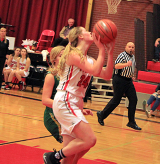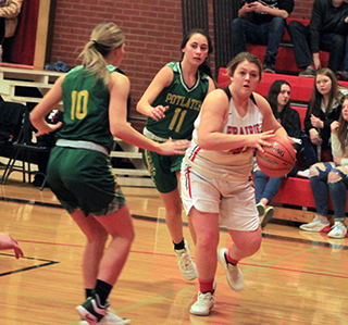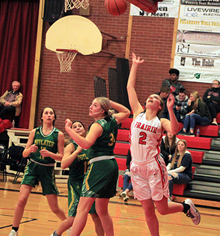Prairie outscored Potlatch 15-0 in the first quarter on their way to a 63-17 win on Senior Night.![]() Potlatch was 0 for 7 from the field and 0 for 3 from the line in that opening quarter and had 11 turnovers. Prairie meanwhile wasn’t blistering the nets as they hit just 5 of 15 from the field and 3 of 6 at the line but it was enough to build a double digit lead. Schwartz, a senior, normally the first player in off the bench, started instead Wemhoff and scored Prairie’s first 2 points of the game on a short baseline shot. Shears, also a senior, followed with a 3-pointer. It took awhile for the third senior, Uhlenkott, to get on the scoreboard. Prairie followed that start with a basket by Lockett, a free throw each by Shears and Schwartz, another 3 by Shears and 2 baskets by Wemhoff, who came off the bench last in the quarter. Potlatch finally got on the board 20 seconds into the second quarter with 2 free throws. It was over 2 minutes later before they scored their first basket. In between those two scores Prairie added 7 more points. Schlader scored a putback, Shears drove to the hoop after making a steal, Schlader scored a free throw and then had a steal that led to a basket by Wemhoff. That made it 22-2 and Potlatch’s first basket made it 22-4. Prairie outscored Potlatch 13-5 the rest of the half to take a 35-9 halftime lead. Both sides shot a bunch of free throws in the second quarter. Each team was 7 for 13 at the line in the quarter. Schwartz had a free throw and then converted a 3-point play. Lockett was 3 for 6 at the line and Prigge closed out the first half scoring with a 3-pointer. The Pirates outscored Potlatch 16-5 in the third quarter as they held the Loggers to 2 baskets although 1 was a 3-pointers. Prairie meanwhile got a free throw from Lockett, a basket from Wemhoff and 2 free throws from Schwartz in a 5-0 run. After Potlatch’s 3-pointer, Shears answered with a 3-pointer then Schwartz scored a lay-up. Forsmann made a free throw, Schlader a 3 and Shears finished off the quarter by taking a steal to the hoop for a layup to make it 51-19 at the end of the period. The fourth quarter was played with a running clock. Schwartz opened the quarter with her second 3-point play of the game and Shears followed with her fourth 3-pointer to make it 57-14. At that point coach Lori Mader realized that Uhlenkott had yet to score in her final home game and set up the offense to get her a basket. The first attempt didn’t work and Wemhoff wound up scoring a 15 footer. With 2:23 left Uhlenkott got on the board with a lay-up and after a 3-pointer by Potlatch, scored the game’s final 2 points at the free throw line. Shears wound up with 17 points with Schwartz scoring 14. Wemhoff scored 10, Schlader 8, Lockett 5, Uhlenkott and Prigge 4 each and Forsmann 1. Prairie had a 47-37 rebounding edge led by Schlader with 15 rebounds. Schlader also had 8 steals while Shears and Lockett had 5 each. Uhlenkott had 4 assists. Prairie was 19 for 65 from the field, 29%, and 18 for 29 at the line, 62%. Potlatch was 4 for 30 from the field, 13%, and 7 for 18 at the line, 39%. Prairie finishes up their league schedule in second place with a 12-2 record and are 17-2 overall with a non-league game at Grangeville that was played on Tuesday, Feb. 2. The Lady Pirates will play their first District game on Wednesday, Feb. 10 at Prairie High School at 6 p.m. The likely opponent is Genesee. There was no JV game. Prairie 15 20 16 12 -63 Potlatch 0 9 5 3 -17 Prairie-Lockett 0-10, 5-10, 5; Shears 6-15, 1-2, 17; Uhlenkott 1-11, 2-2, 4; Schlader 3-10, 1-2, 8; Schwartz 4-7, 6-8, 14; Wemhoff 5-7, 0-0, 10; Forsmann 0-3, 1-2, 1; Prigge 1-2, 1-2, 4; Johnson 0-1, 0-0, 0. 3-pointers-Shears 4, Schlader, Prigge. Potlatch-Larson 1-9, 0-0, 3; McKinney 0-4, 0-0, 0; Arciga 0-3, 0-1, 0; Fry 1-6, 2-2, 4; Reynolds 1-6, 2-8, 4; Carpenter 1-1, 1-5, 4; Butterfield 0-0, 0-0, 0; Chambers 0-1, 2-2, 2. 3-pointers-Larson, Carpenter. ![]() Senior Madison Shears takes the ball into the lane on Senior Night against Potlatch. ![]() Senior Hope Schwartz goes for a lay-up against Potlatch on Senior Night. ![]() Delanie Lockett got behind the defense for a lay-up. ![]() Laney Forsmann goes for a lay-up against Potlatch. ![]() Tara Schlader has just put up a shot against Potlatch. At right is Madison Shears. *indicates league game NOVEMBER