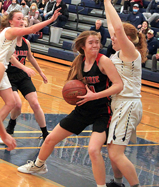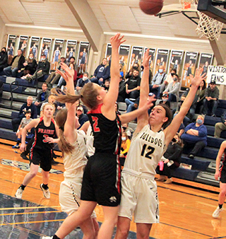 The Prairie Lady Pirates closed out their regular season with a win at Grangeville, 48-45, Tuesday, Feb. 2. ![]() Prairie trailed by 4 points with a minute to play and were able to pull out the victory. Prairie got off to a good start as Kristin Wemhoff and Madison Shears each scored a basket for a 4-0 lead. After a Grangeville basket, Shears was fouled and sank both free throws, a harbinger of things to come. The two teams traded scores with Delanie Lockett making a basket and Wemhoff a free throw after a pair of Grangeville baskets. That made it 9-6. A Grangeville basket then cut the lead to 9-8 but Shears answered with a 3-pointer and Ellea Uhlenkott scored after a steal by Tara Schlader for a 14-8 lead that wound up being Prairie’s biggest lead of the game. Grangeville scored to make it 14-10 as the first quarter ended. Grangeville again cut the lead to 1 with a basket and a free throw but Shears answered with a pair of free throws. A pair of baskets then gave Grangeville their first lead of the game at 16-17 with 3:36 left in the half. Grangeville added 2 free throws to complete a 0-6 run and take a 16-19 lead. A free throw by Lockett was followed by a 15 foot shot by Schlader that tied it at 19 with 1:44 left in the half. Shears then closed out the first half scoring by making 4 straight free throws to give Prairie a 23-19 halftime lead. Shears had gone 8 for 8 at the line in the first half, 6 for 6 in the second quarter. Grangeville started the second half with a 0-7 run to retake the lead at 23-26. Wemhoff cut the deficit to 1 with a drive to the hoop but Grangeville answered with a 3-pointer by Camden Barger. A basket each by Uhlenkott and Wemhoff tied the scored at 29 but Barger drove for a lay-up to put Grangeville back on top. Prairie tied it with a buzzer beater as Schlader passed to Laney Forsmann for a basket that made it 31-31. Grangeville opened the fourth quarter with a 0-6 run to take their biggest lead of the game at 31-37 with 6:20 to play. Grangeville then kept trying to sink the 3-point dagger to put Prairie away as 3 straight trips down the floor they put up a 3-point shot within a couple passes instead of working the clock. Each time Prairie got the rebound and it led to points on their end. Schlader scored on a drive to the hoop. As did Shears on the next possession. On the third trip, Uhlenkott was fouled and made both free throws to tie the score with 3:26 to play. Grangeville finally sank a 3-pointer to go back on top but Prairie cut it to 1 on a putback by Lockett. Grangeville answered with a basket and Schlader came right back with a basket. Grangeville hit another 3 to take a 41-45 lead with 1:00 to play. They appeared to get the ball back when Lockett took a shot to her face near the eye that didn’t get called. Lockett lost control of the ball and coach Lori Mader called timeout and got it granted with Prairie somehow keeping possession. That led to a 3-point play by Wemhoff that cut the deficit to 1 with 56 seconds left. Grangeville looked to run some clock this time but were called for an illegal dribble with 44 seconds to play. That led to a drive to the hoop by Lockett to put Prairie ahead 46-45 with 35 seconds left. Lockett missed a chance at a 3-point play with Grangeville rebounding but the Bulldogs turned the ball over again. Prairie got the ball inbounds to Schlader who managed to get the ball to Shears, who was fouled with 16 seconds left. Shears made both free throws for a 3-point Prairie lead. Grangeville got a 3-point attempt by Bailey Vanderwall but it missed and Prairie rebounded and the buzzer sounded. Shears wound up with 17 points to lead all scorers. She wound up hitting 10 of 10 at the free throw line and 3 of 5 from the field. Wemhoff and Uhlenkott each scored 8 with Lockett scoring 7, Schlader 6 and Forsmann 2. Prairie had a 27-23 edge on the boards led by Schlader who had 11 rebounds. Schlader also had 5 steals and 3 assists while Lockett had 4 assists. Prairie was 16 for 33 from the field, 48%, and 15 for 21 at the line, 71%. Grangeville was 18 for 46 from the field, 39%, and 4 for 6 at the line, 67%. Prairie ends their regular season with an 18-2 record, 12-2 in league play. They will open District play on Wednesday, Feb. 10, at 6 p.m. at the PHS gym against Genesee. The JV team finished off their season with a 48-25 win over Grangeville. Grangeville led nearly the entire first half but Prairie turned it around in the third quarter. Prairie scored first on a putback by Riley Enneking but Grangeville came back with 5 straight points. Ali Rehder and Jade Prigge each scored to put Prairie back on top at 6-5 but the lead lasted just 17 seconds as Grangeville closed out the first quarter with a 0-7 run for a 6-12 lead. Taylor